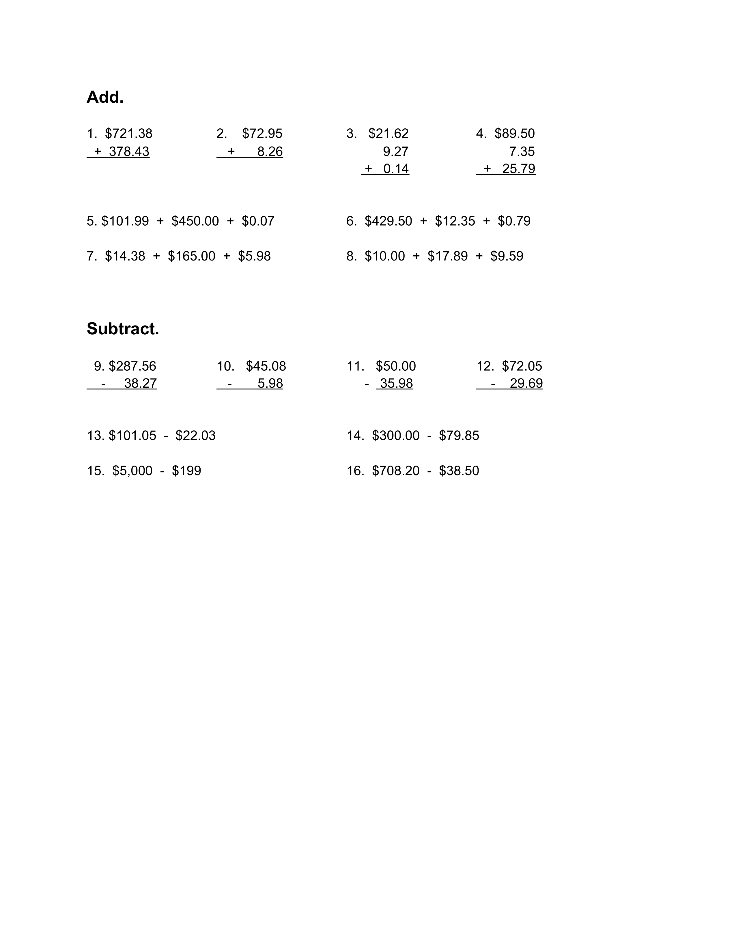 Chapter 1-2 Focus Adding & Subracting without the calculator