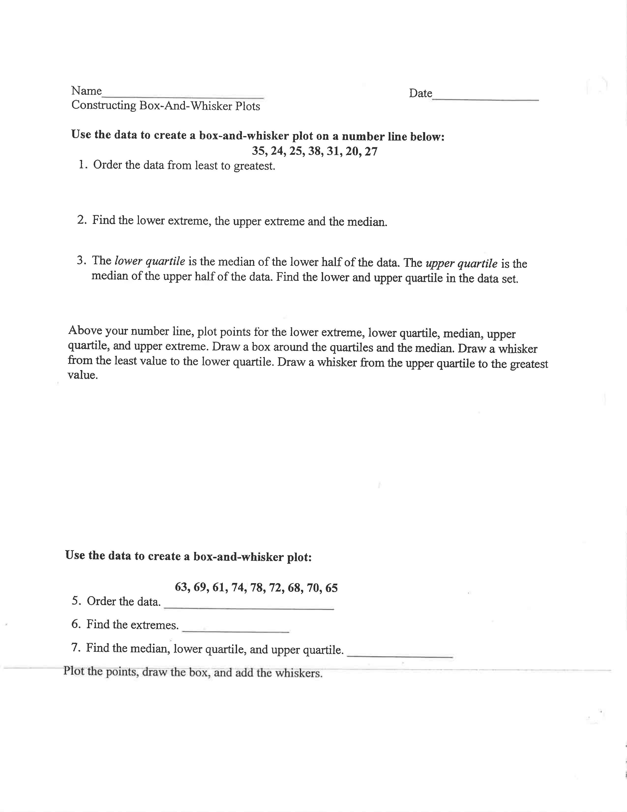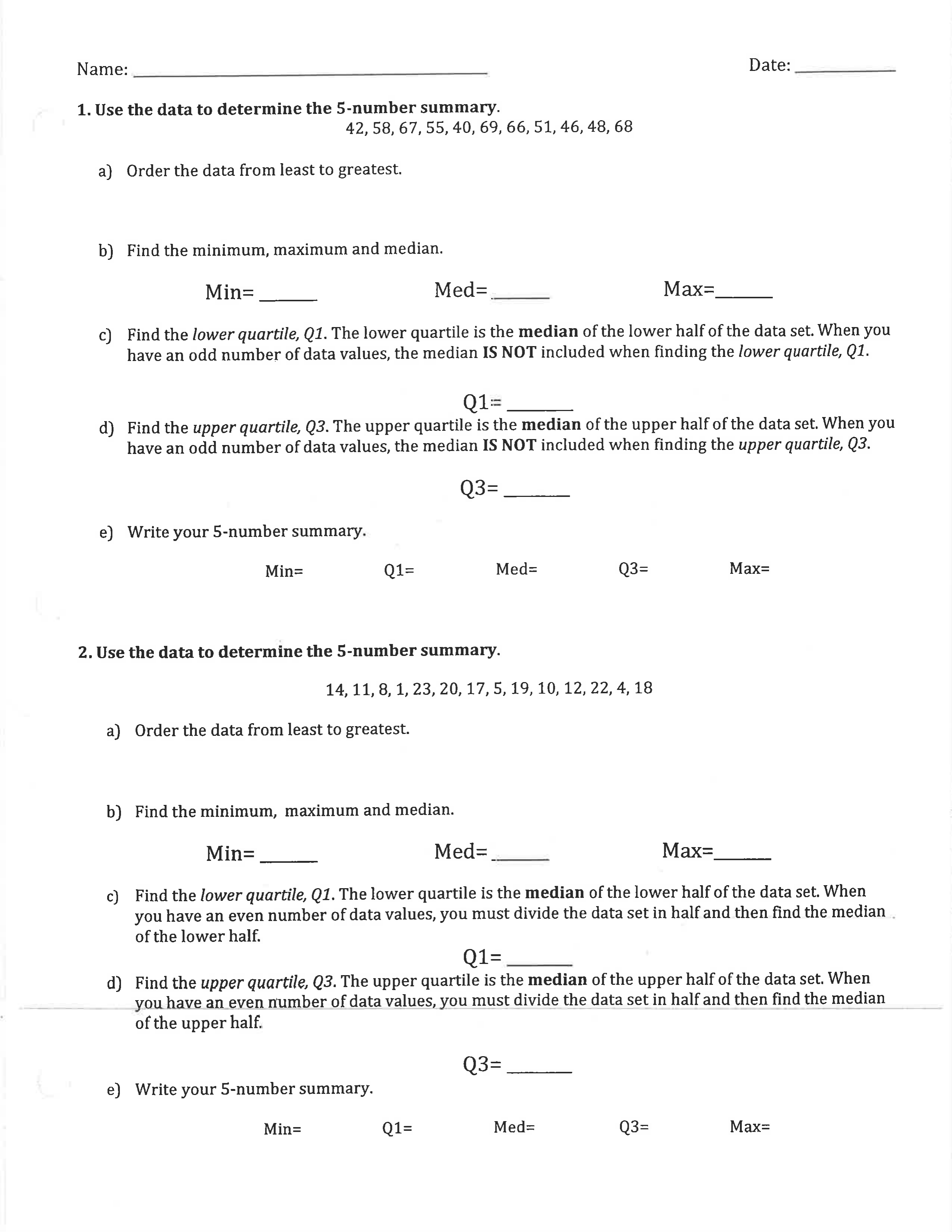 List the five number summary for this data set. Then, use the line and add tick marks to make a box plot. Properly label all the parts of the 5-number summary.
