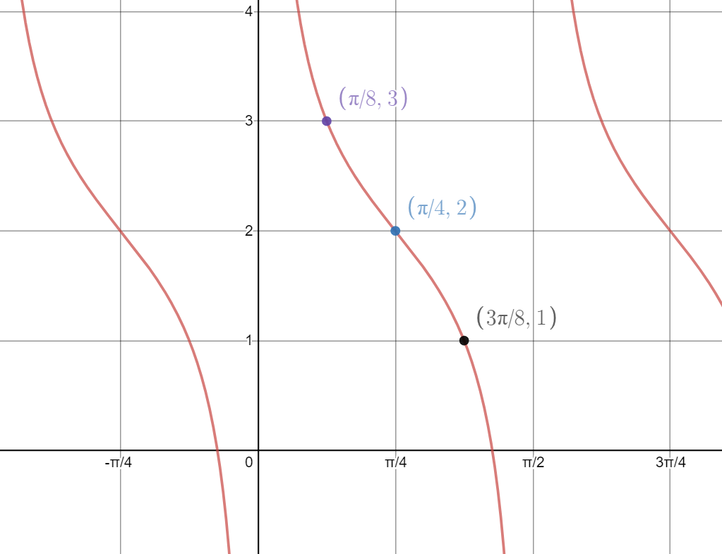Identify a, b, c, and d for this graph, and then write an equation for this graph using tangent.