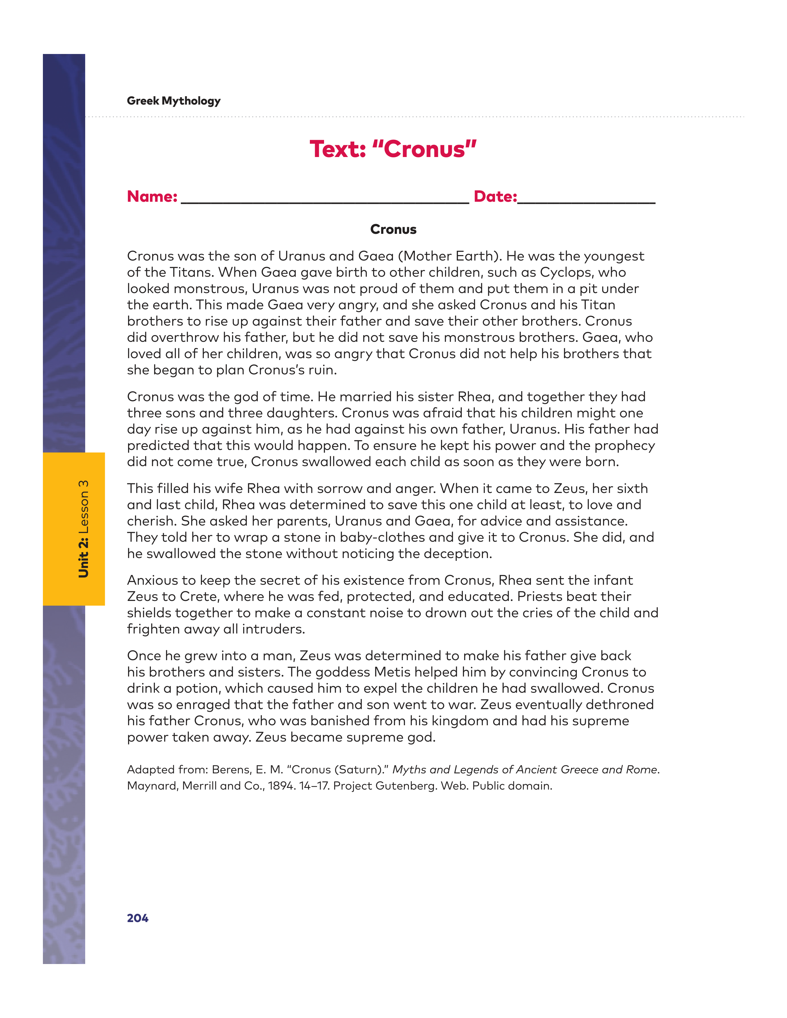 I know this because the text says "borrowed words from the text" (Myth of Cronus).