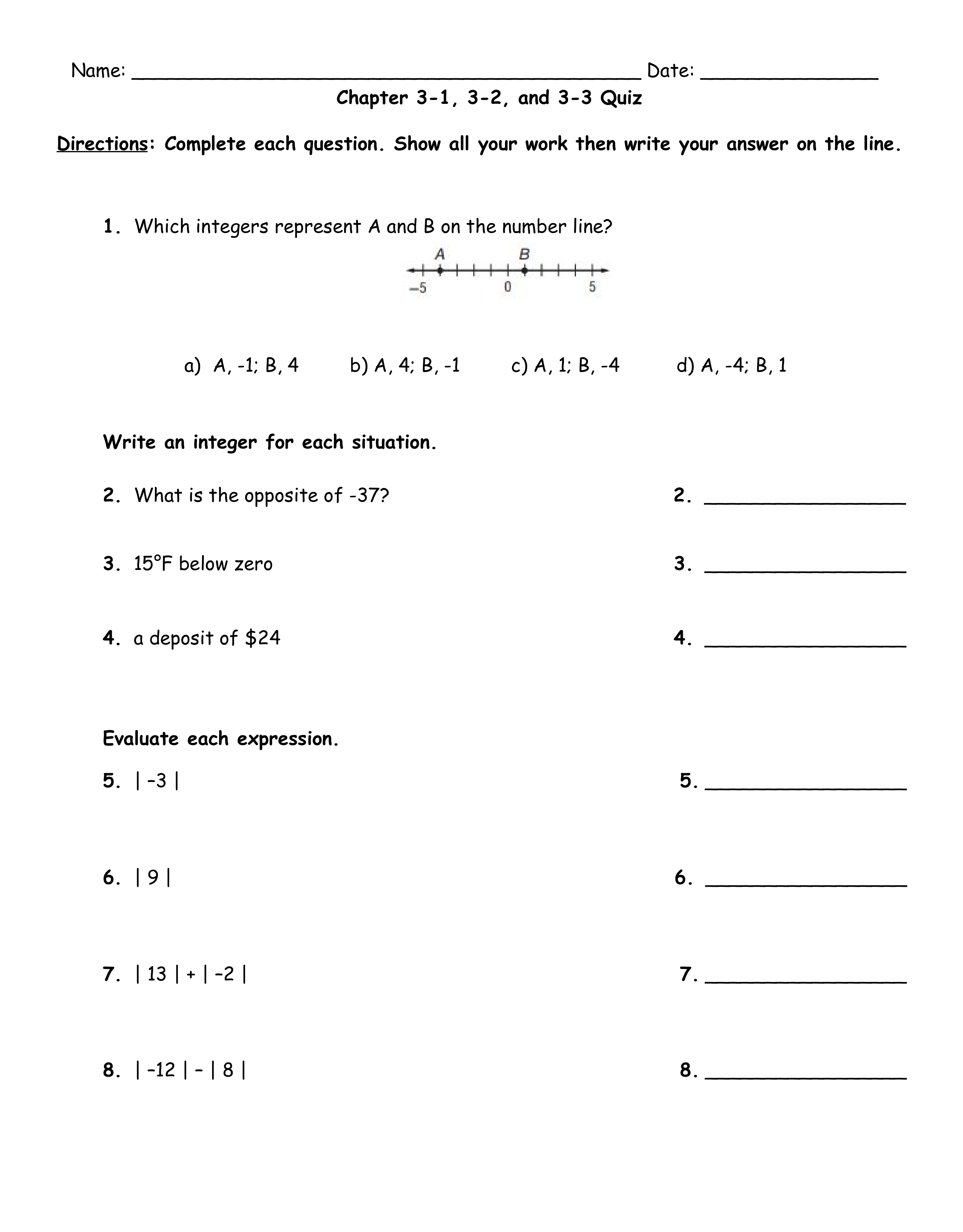 Chapter 3-1, 3-2, and 3-3 Quiz