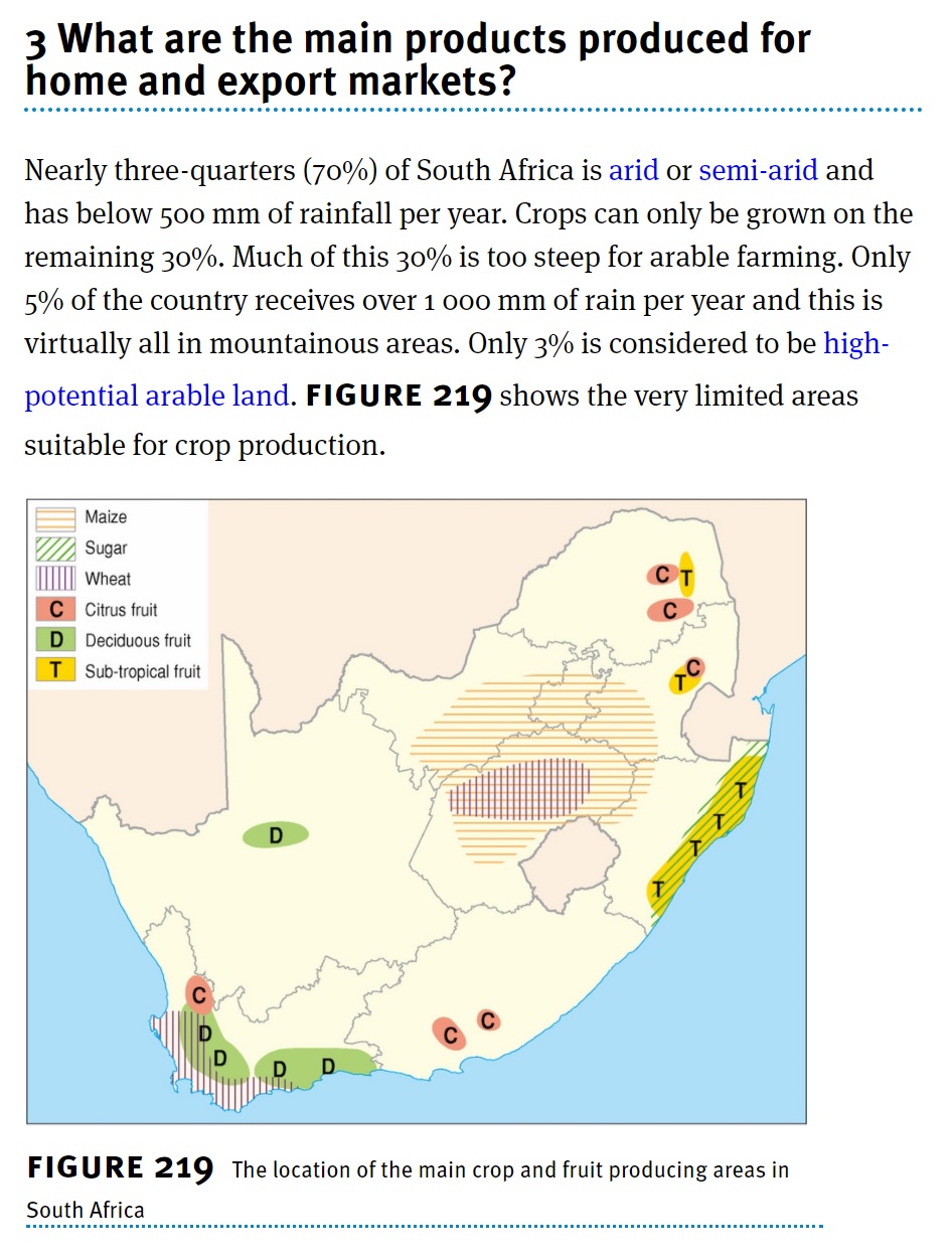 Name (a) 5 factors favouring and (b) 5 factors hindering the agricultural industry in South Africa.