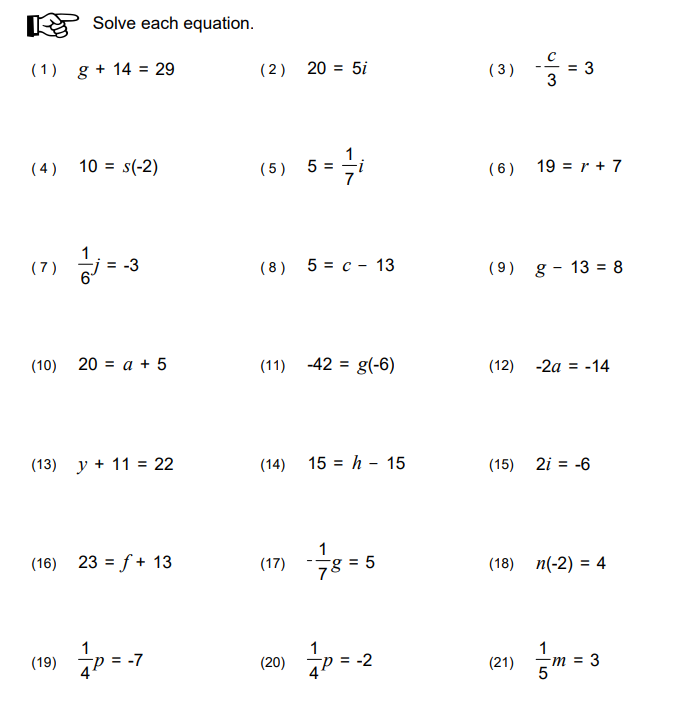 1 Step Equations Mixed