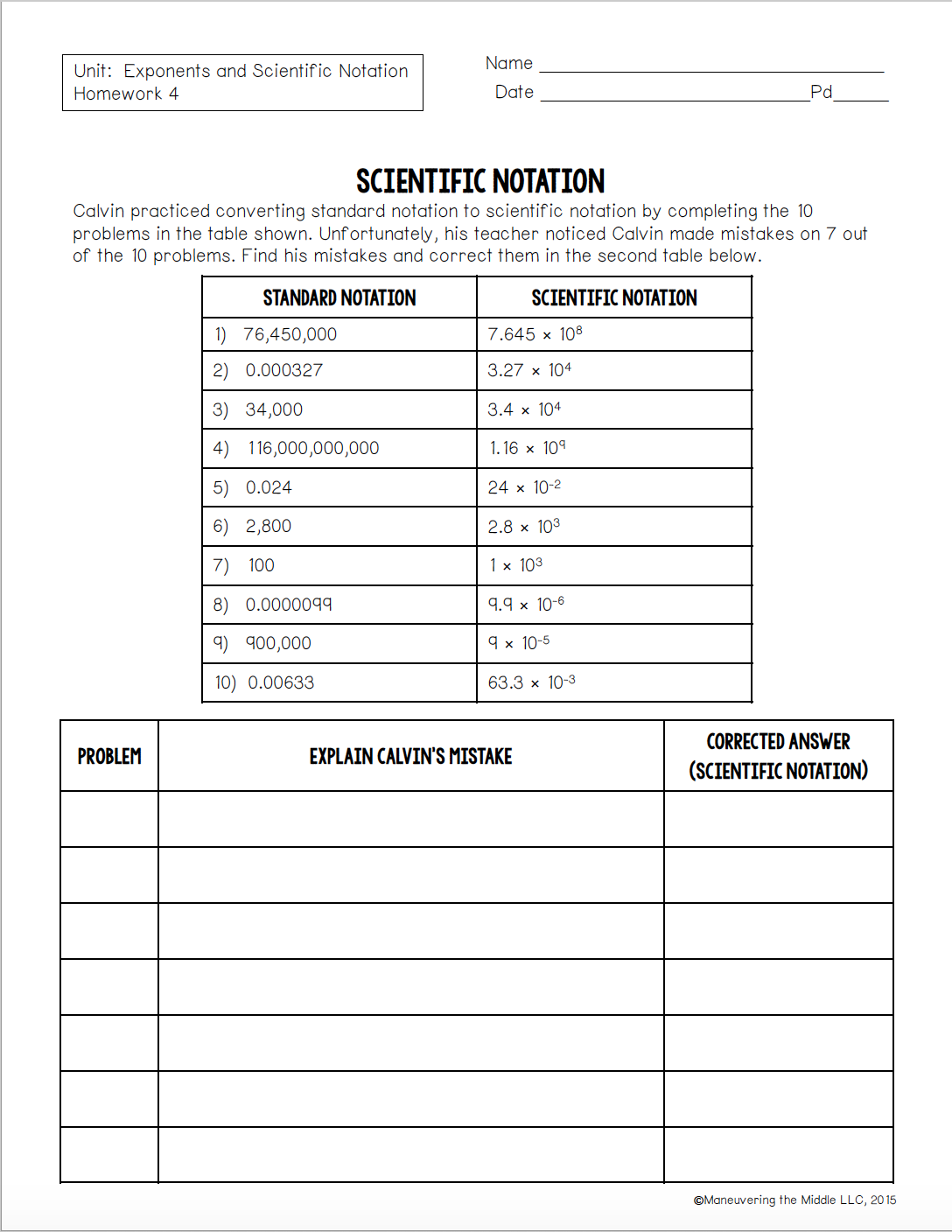 Unit 2 Lesson 5 Homework (Scientific Notation)