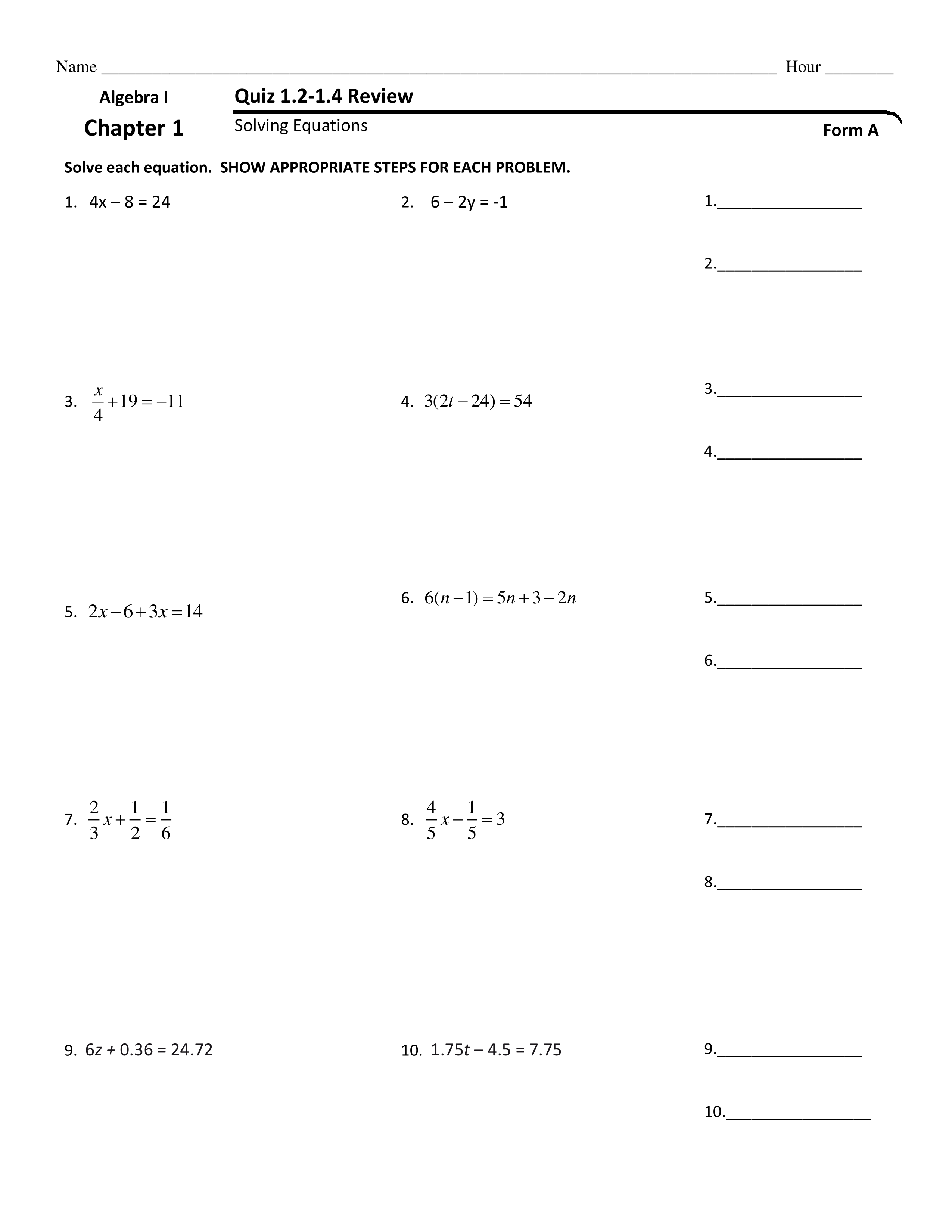 Algebra Unit 1 pg. 7-8 Quiz Review cloned 9/23/2020