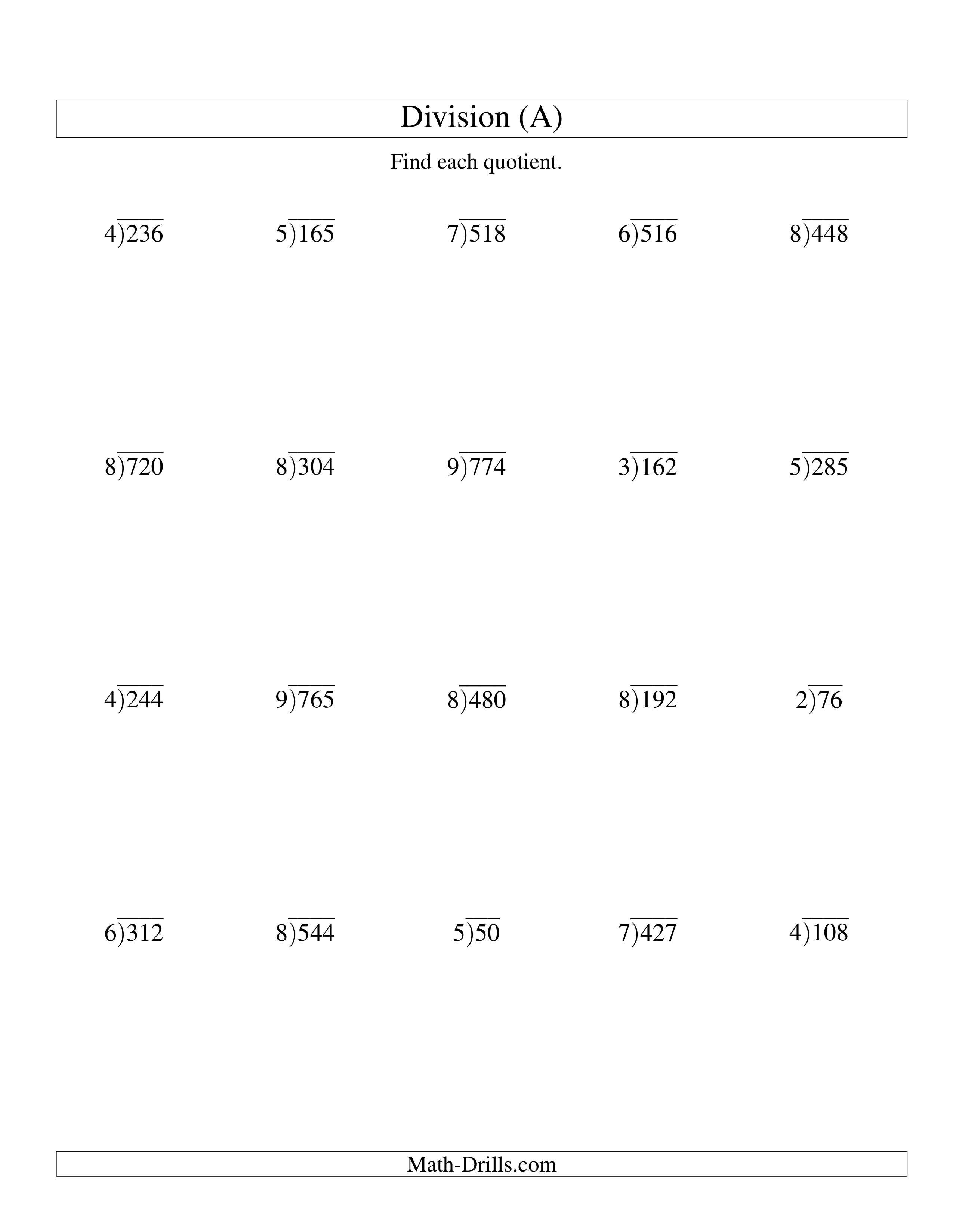 Long Division A (no remainders)