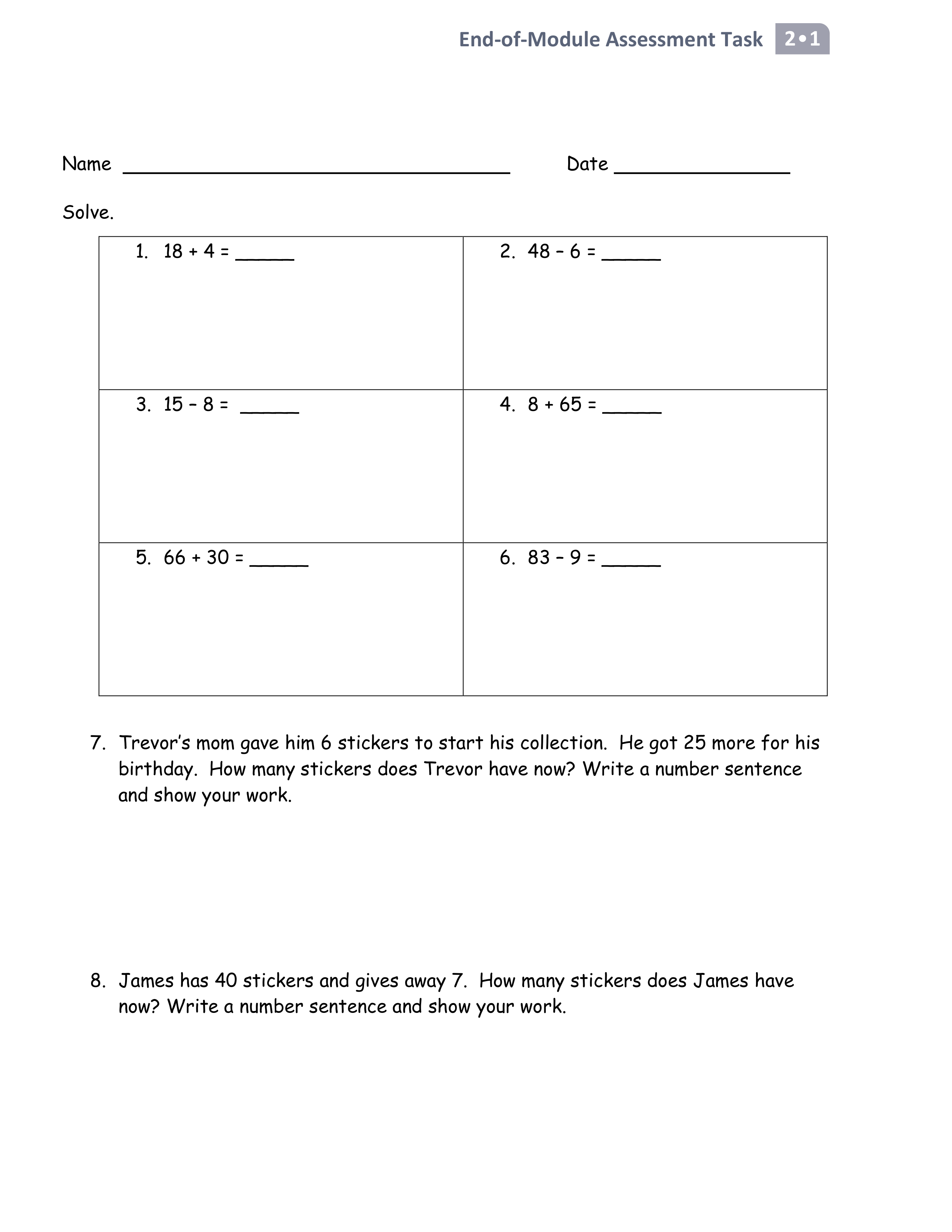 Eureka Math End of Module 1