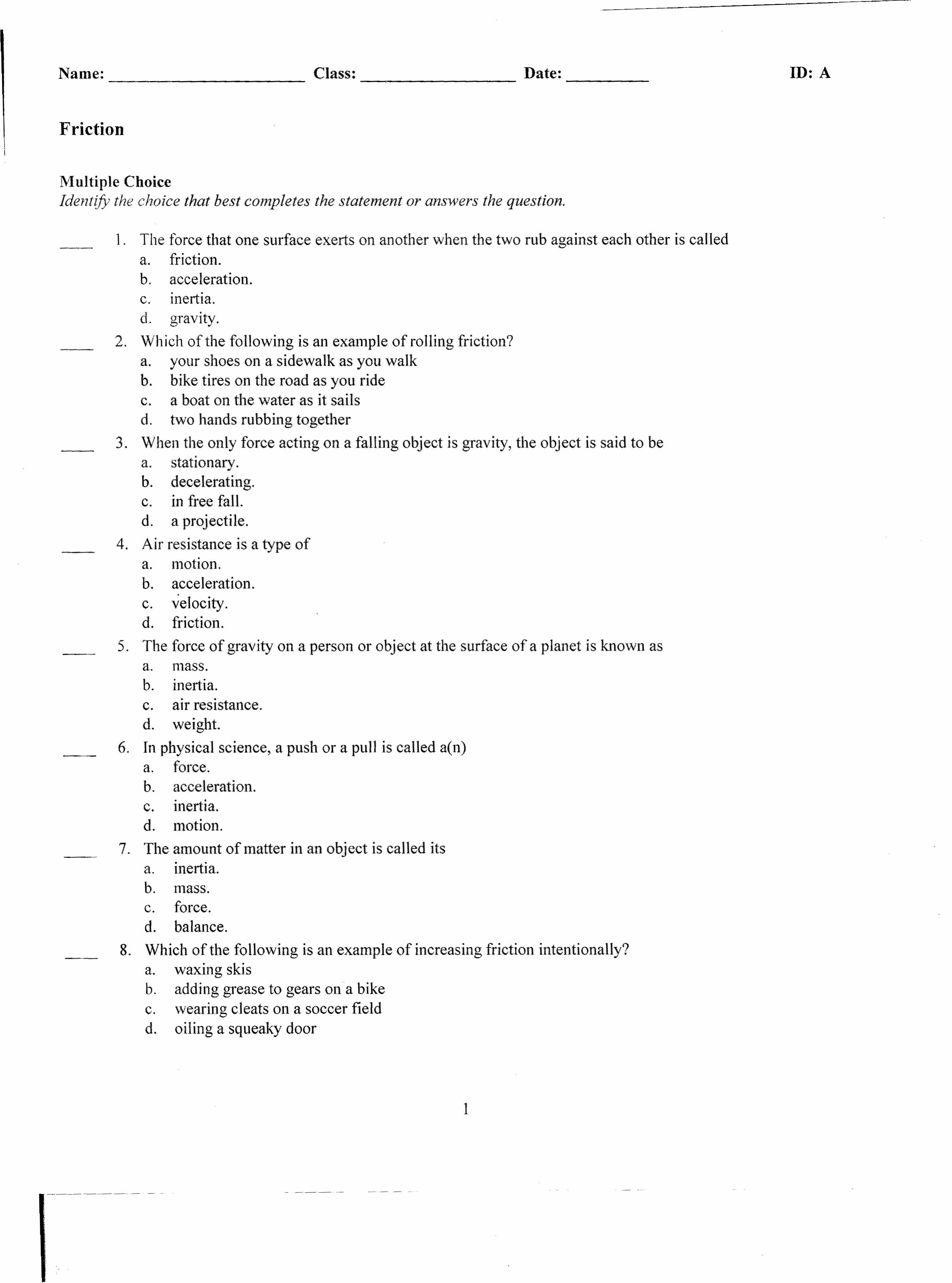 Friction Review Questions