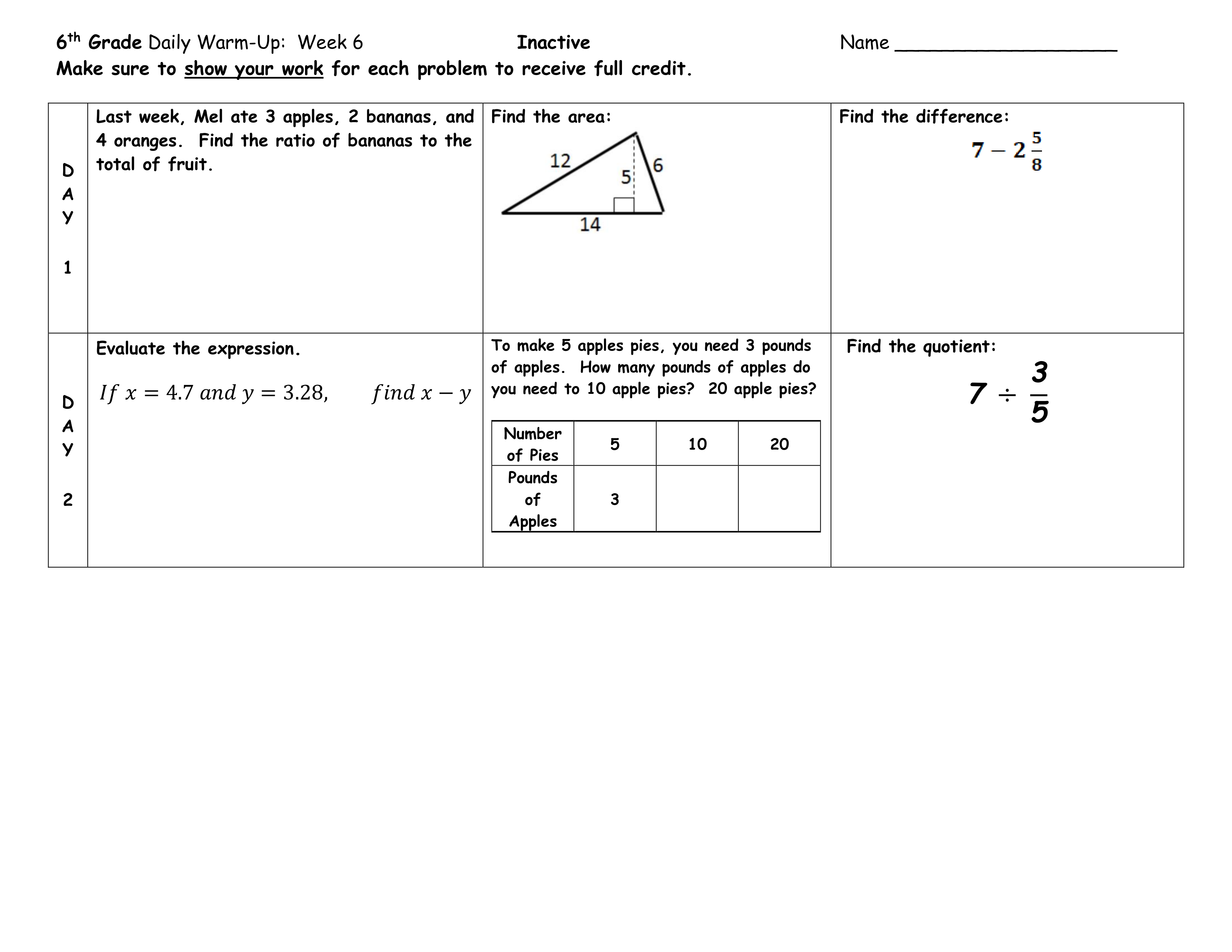 Warm-up Week 6 (9/28)