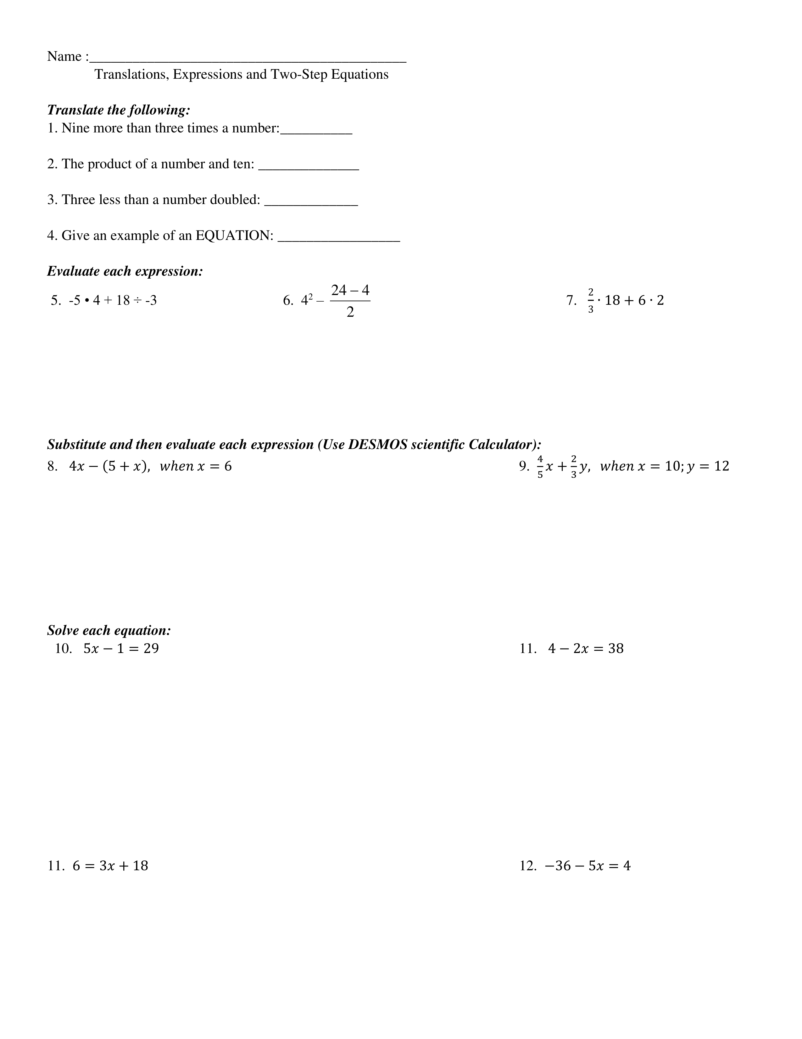 Translation, Expressions, Equations:MakeuP