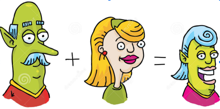 The picture above shows how the offspring inherited their hair color, ear shape and green skin from their father. What is inherited?