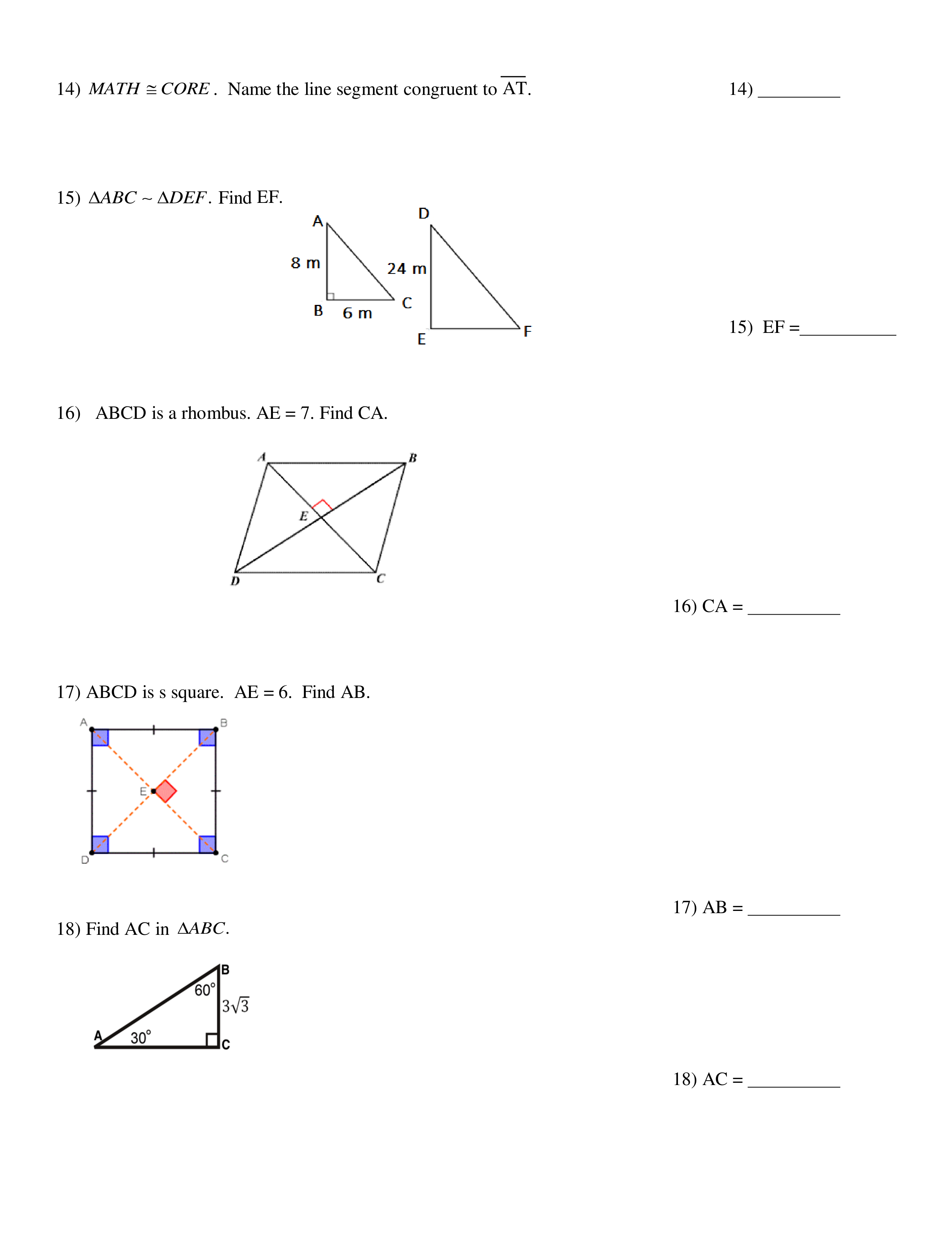 ABCD is a rhombus. AE = 7. Find CA.