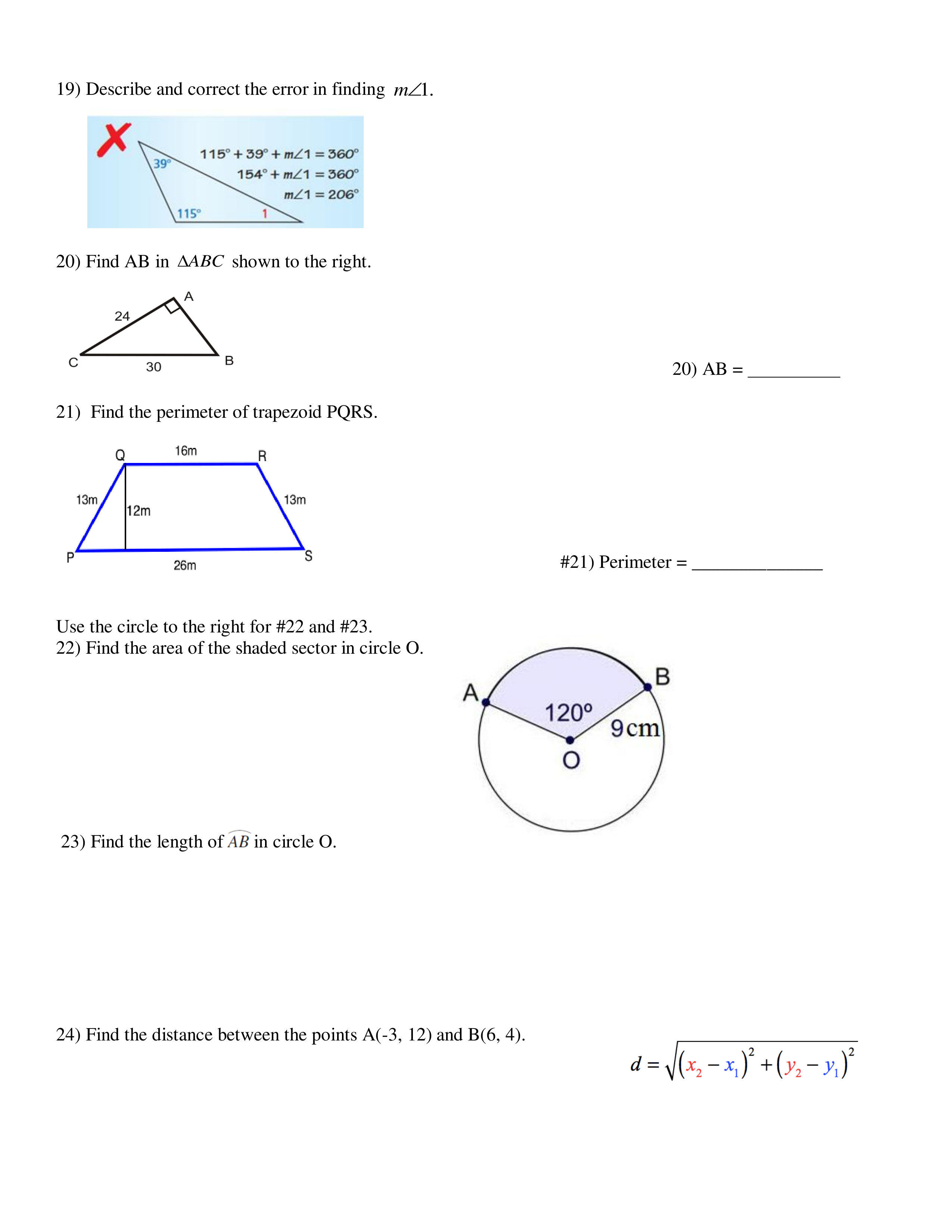 Describe AND correct the error in finding m<1.