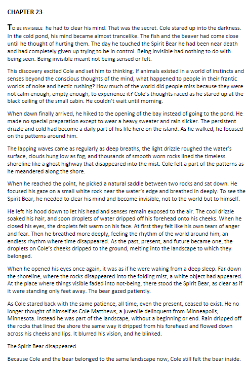 What does Cole see after allowing his mind to clear and letting himself become one with nautre?