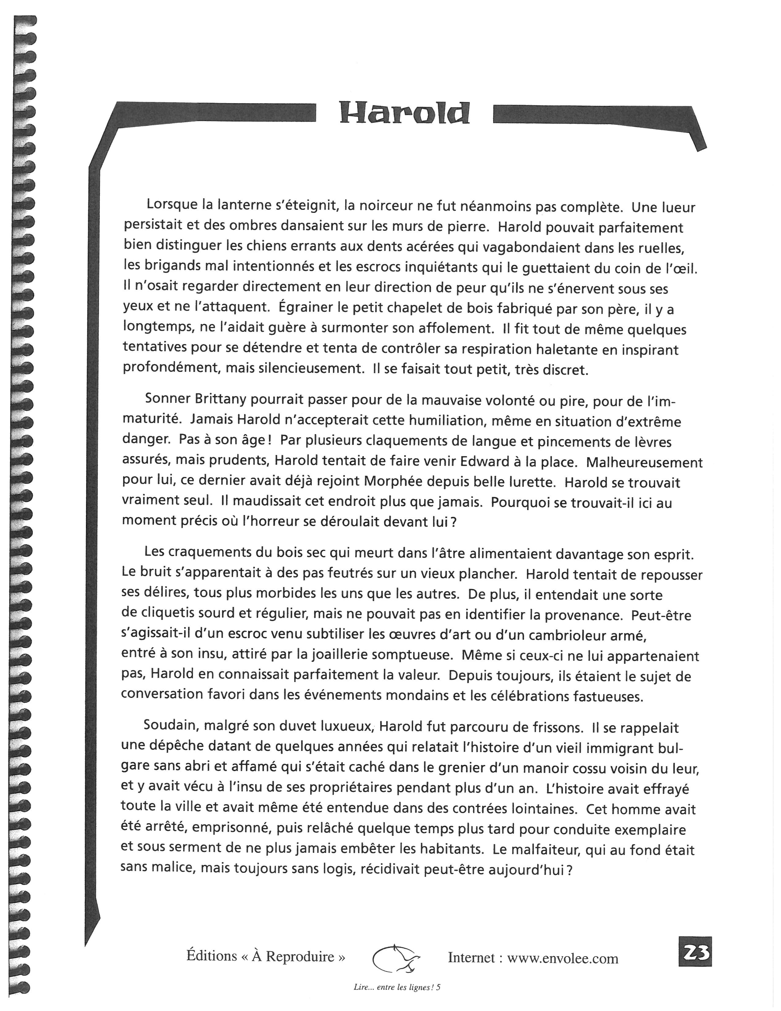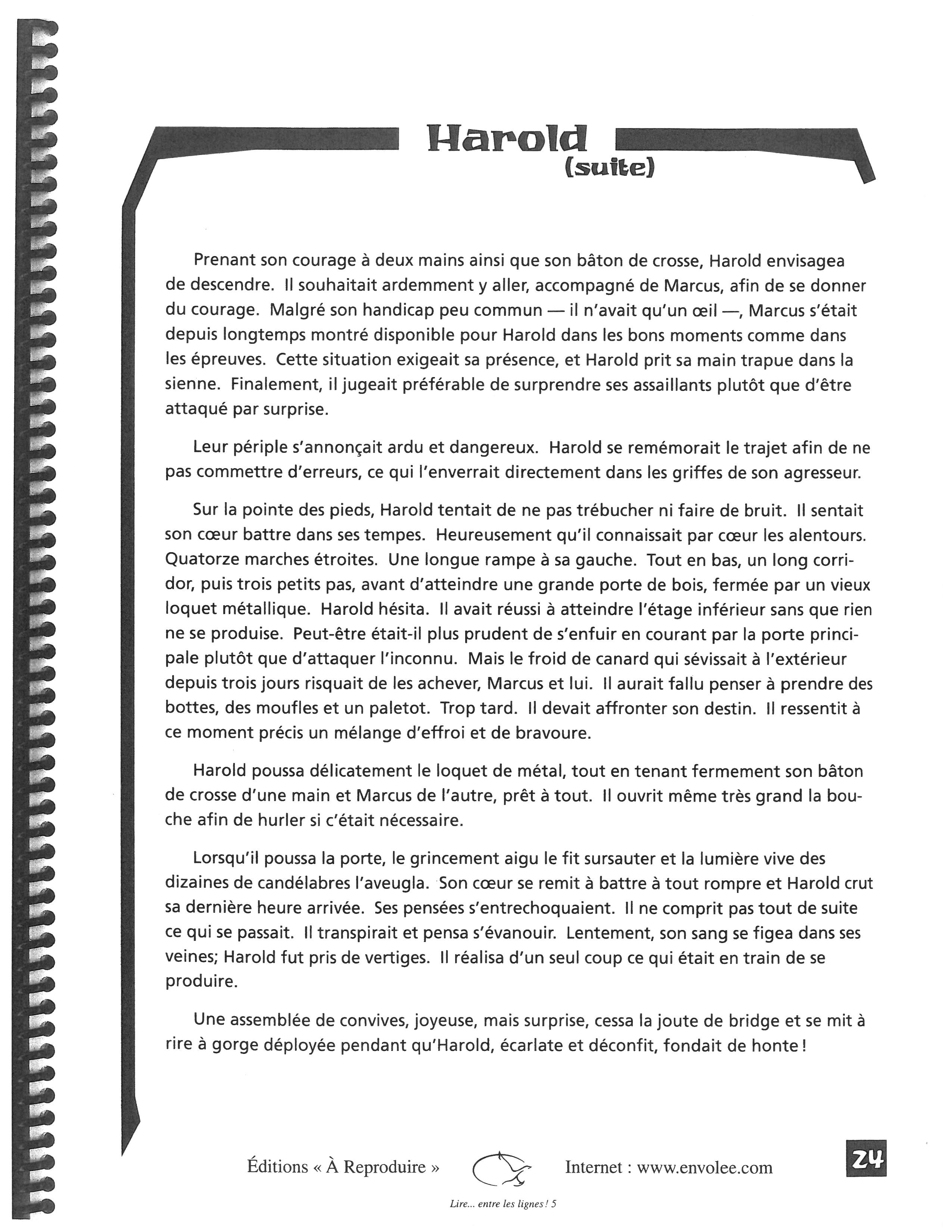 Nomme l'émotion principale vécue par Harold tout au long de ce récit. (1 mot)