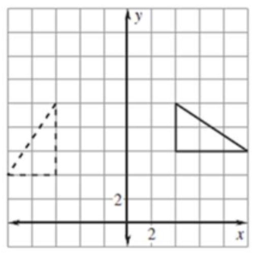 Drag each transformation into its correct category of translation, reflection, or rotation. Dotted line(Pre-image)Original ---> Solid lines(Image)After transformation.