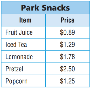 John purchased Fruit Juice, a Pretzel, and Popcorn. If he paid with a $10 bill, how much change will he receive?