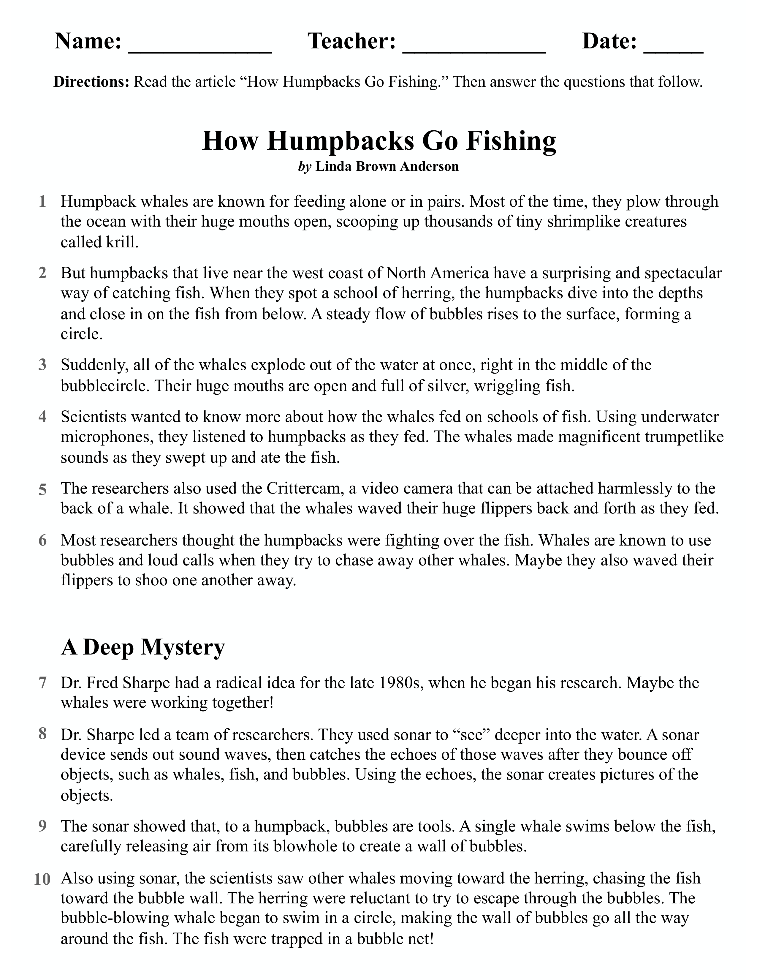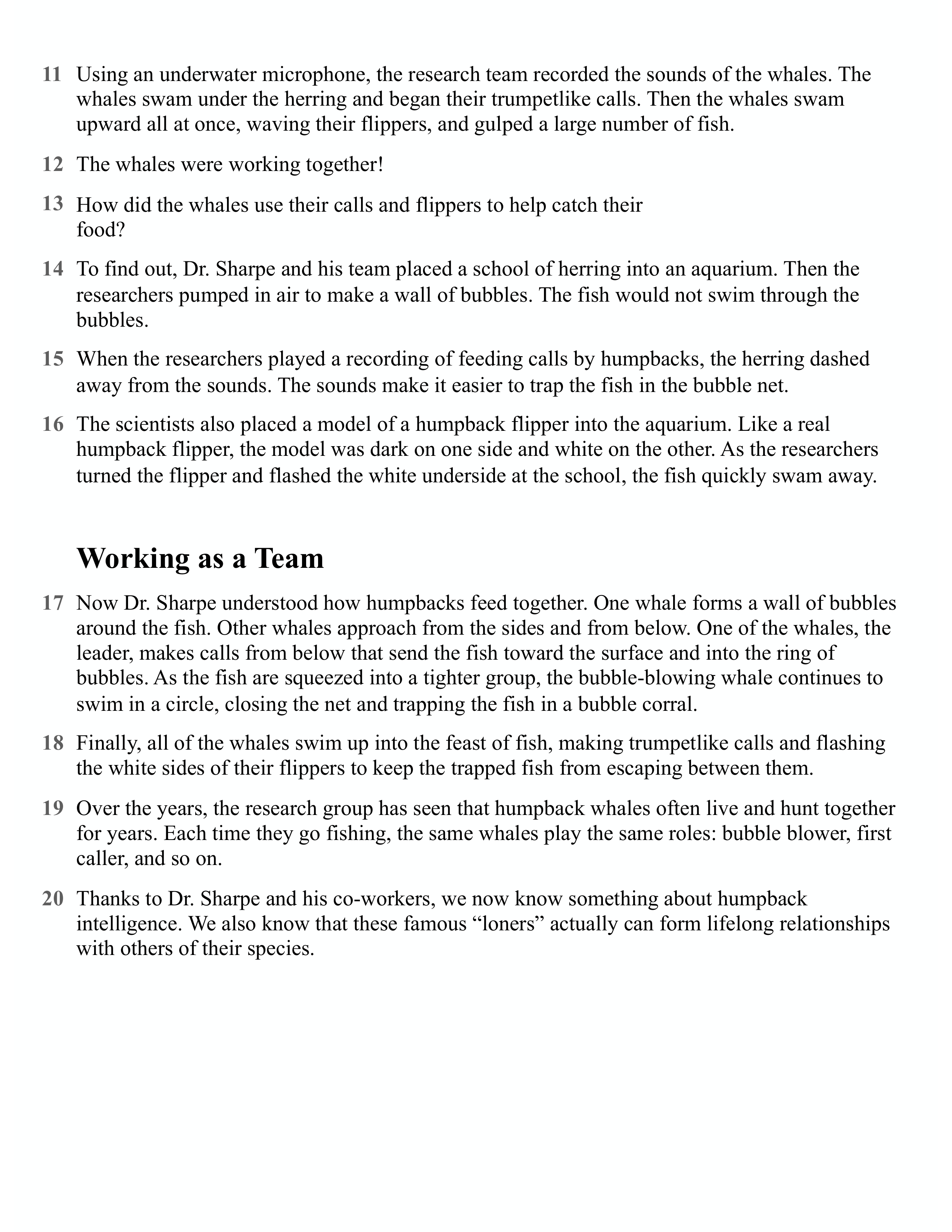 PART A: How does the author of “How Humpbacks Go Fishing” use details to support the idea that whales work together?
