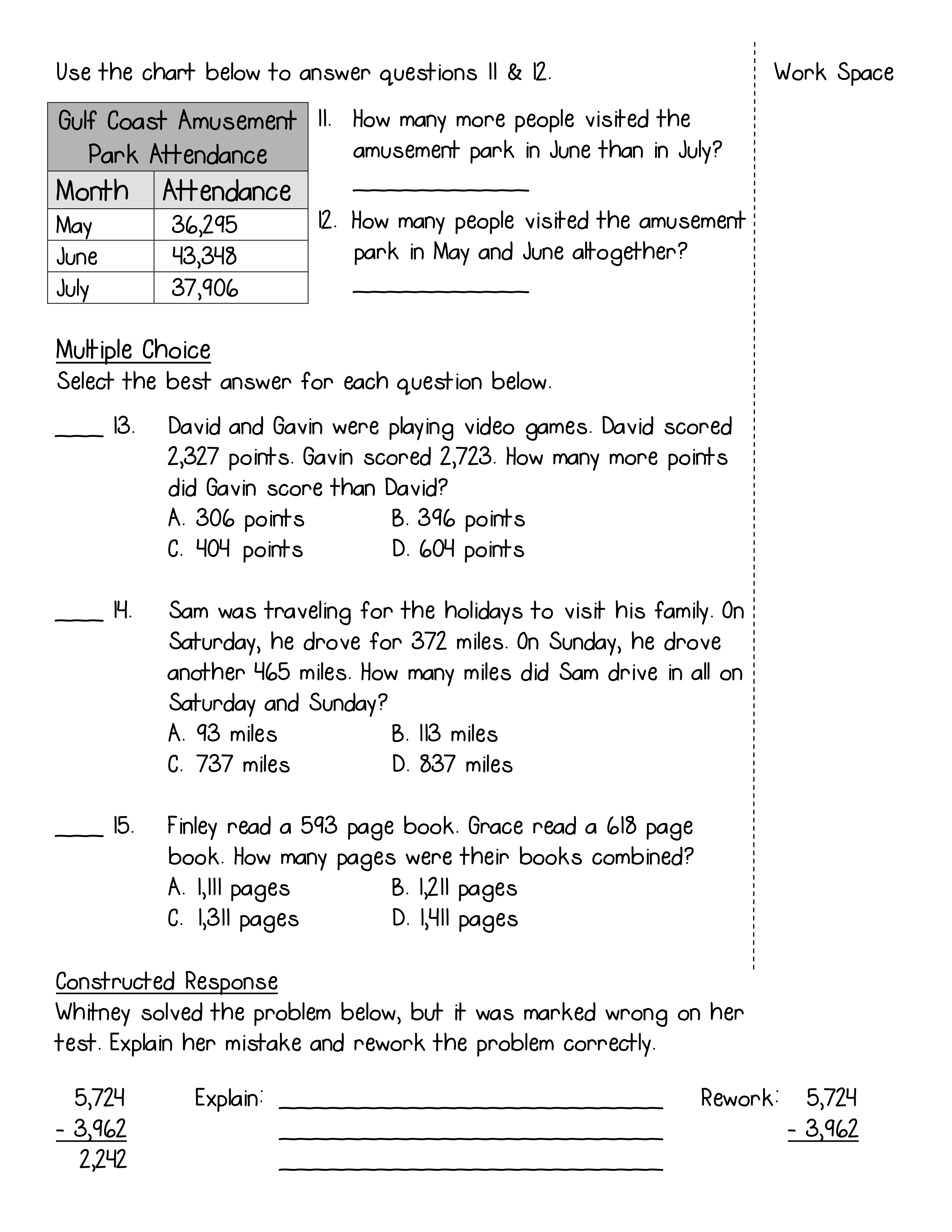 Addition and Subtraction Assessment
