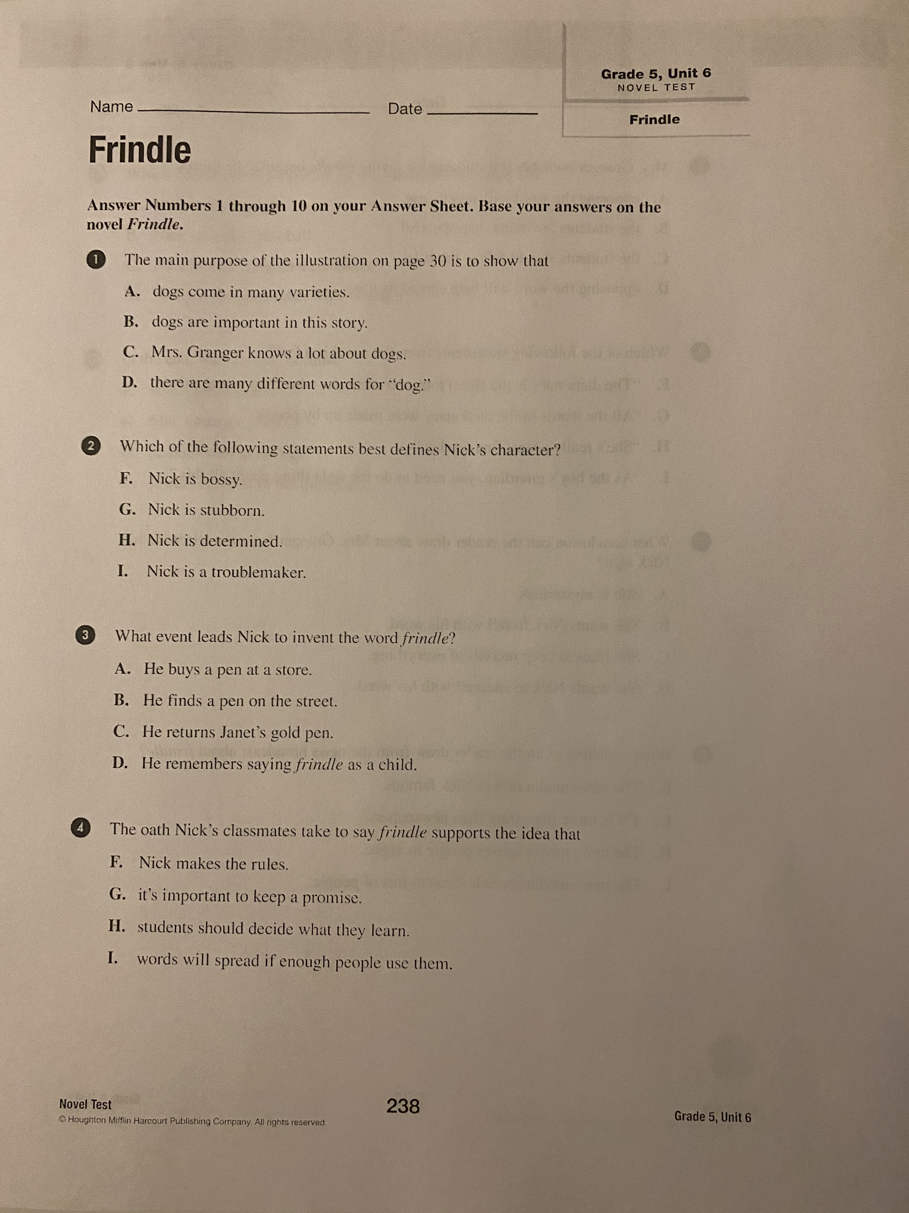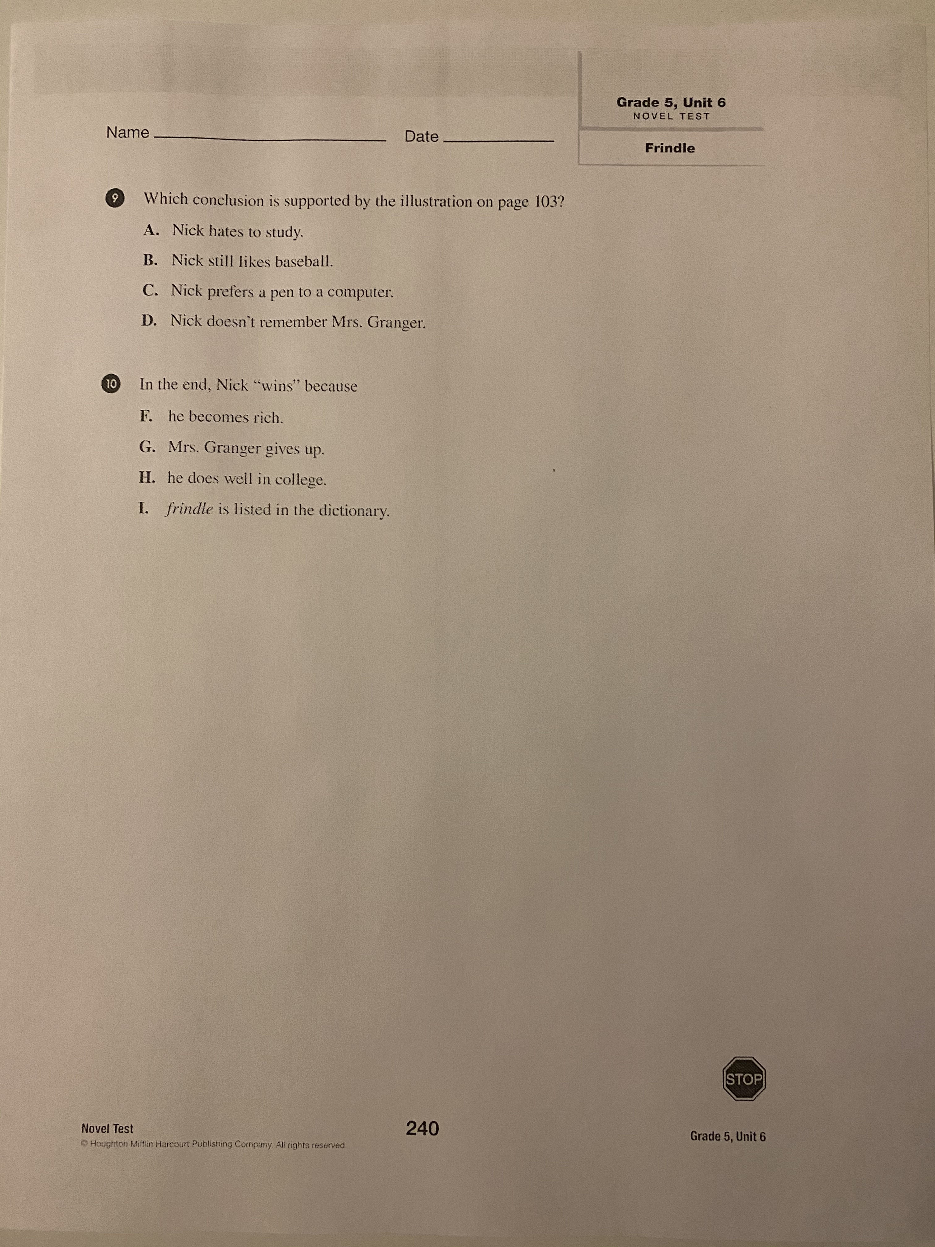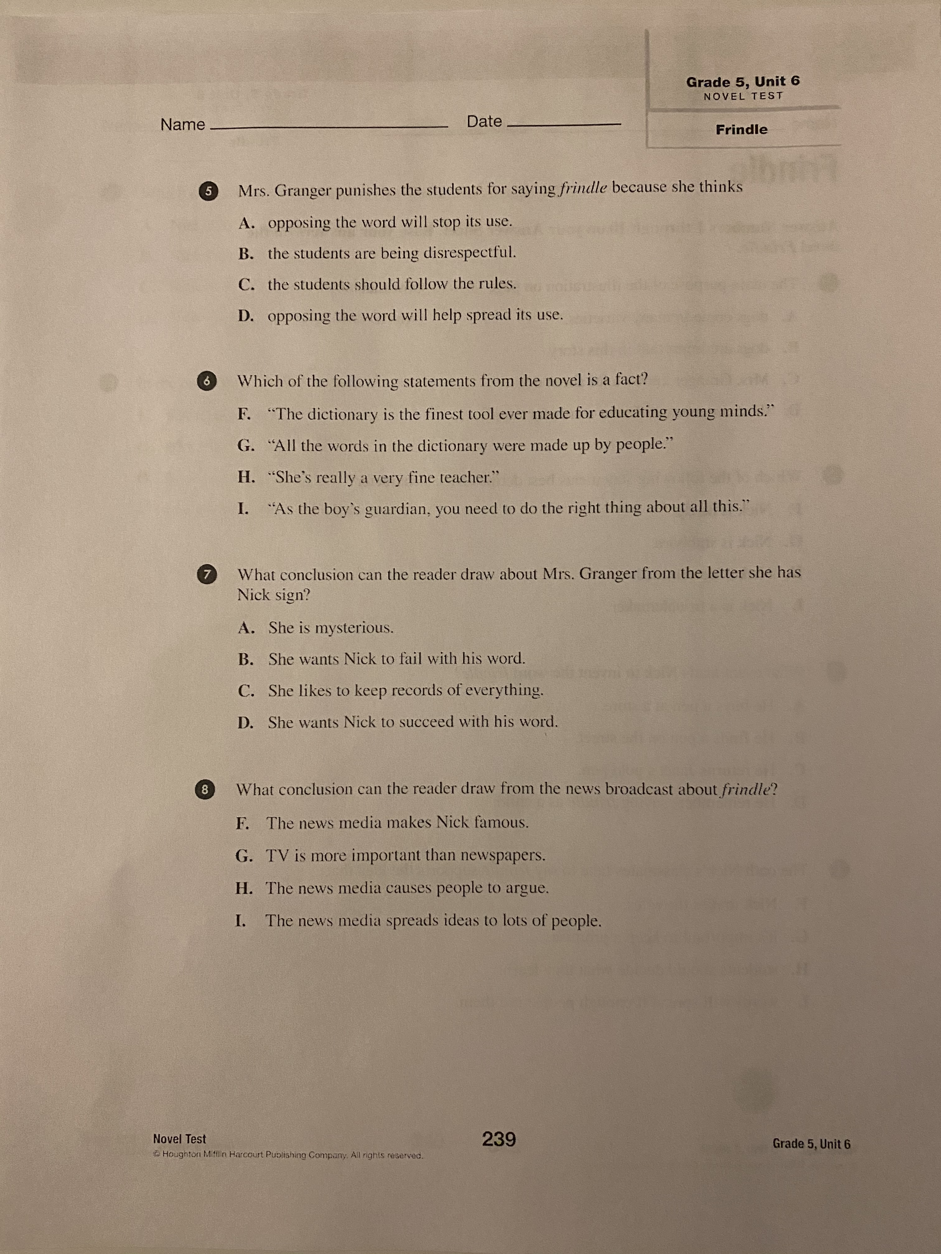 Frindle End of Book Test
