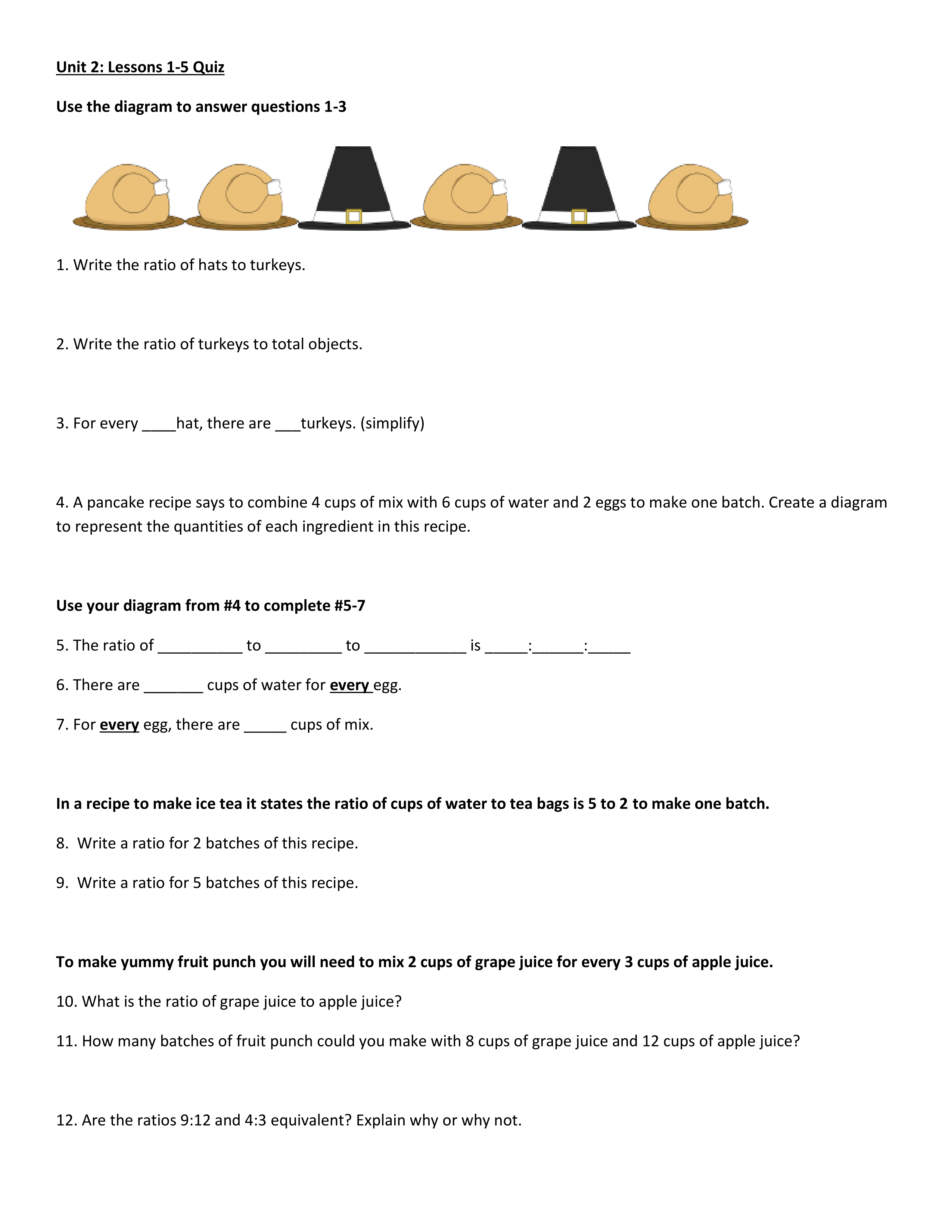 The ratio of __________ to _________ to ____________ is _____:______:_____