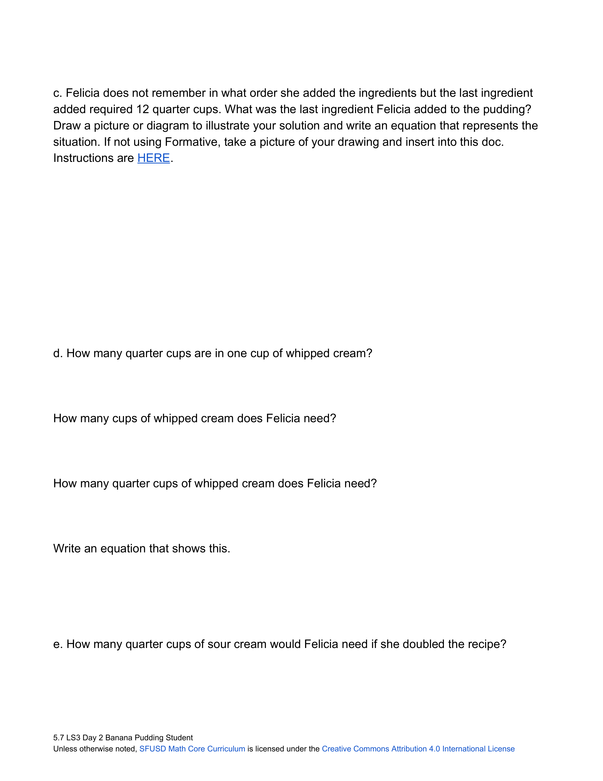 How many quarter cups are in one cup of whipped cream?How many cups of whipped cream does Felicia need?How many quarter cups of whipped cream does Felicia need?Write an equation that shows this.e. How many quarter cups of sour cream would Felicia need if she doubled the recipe?