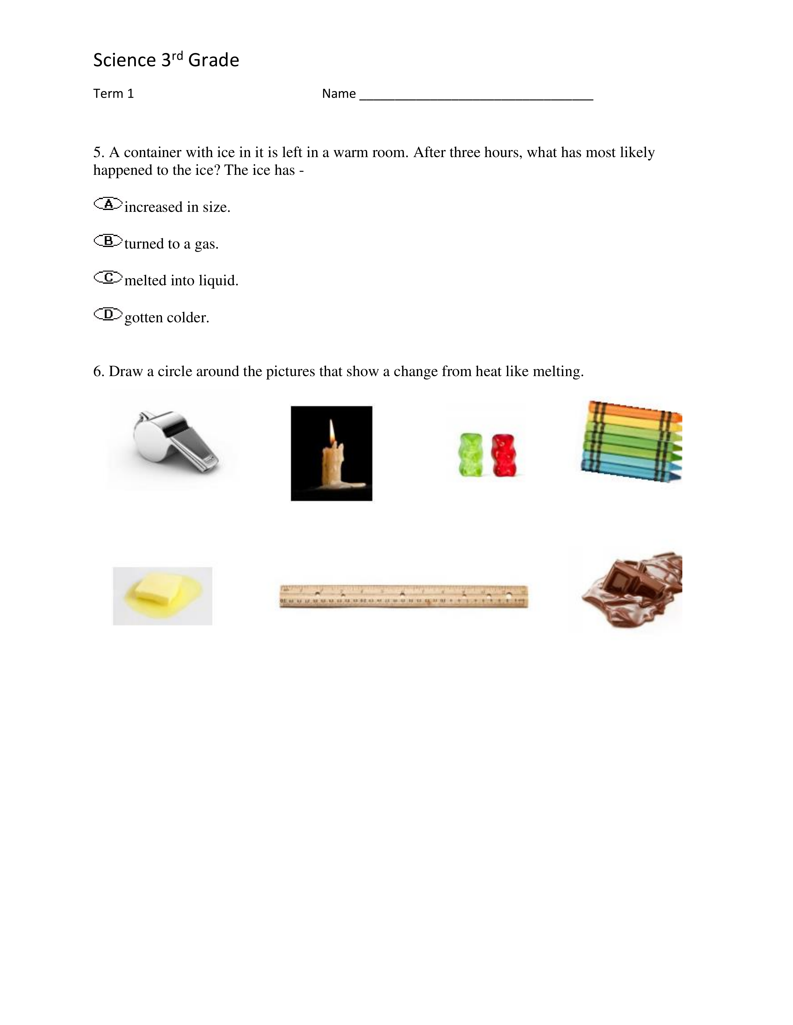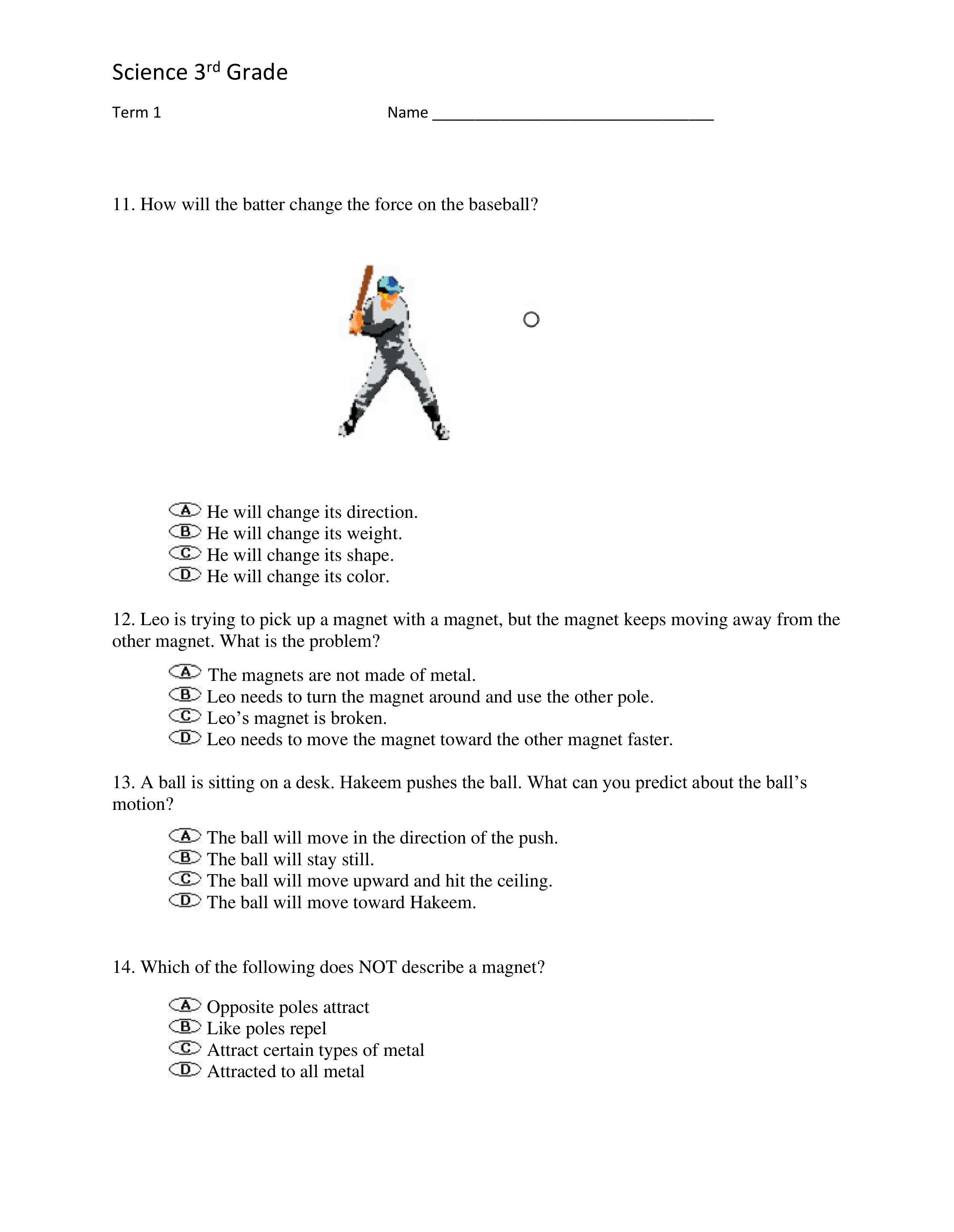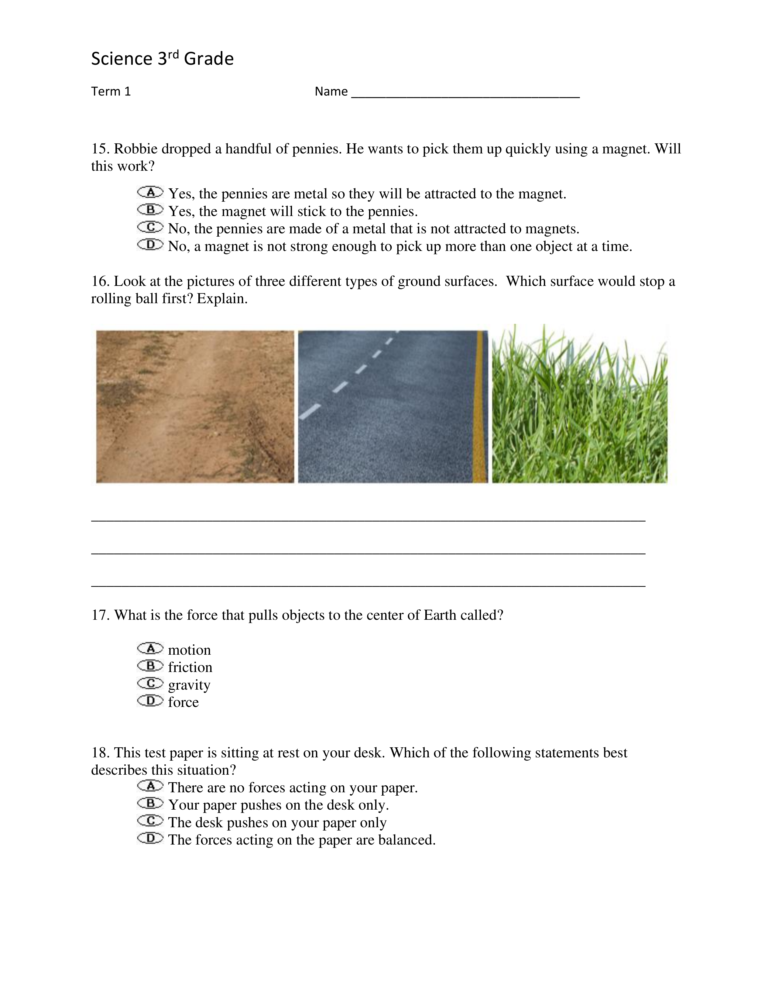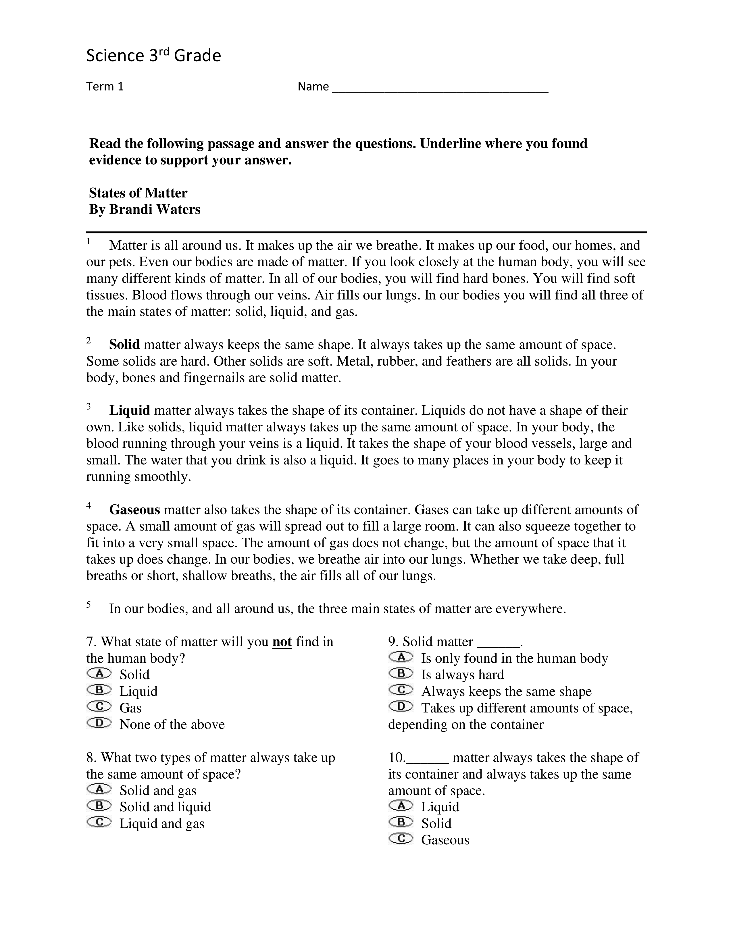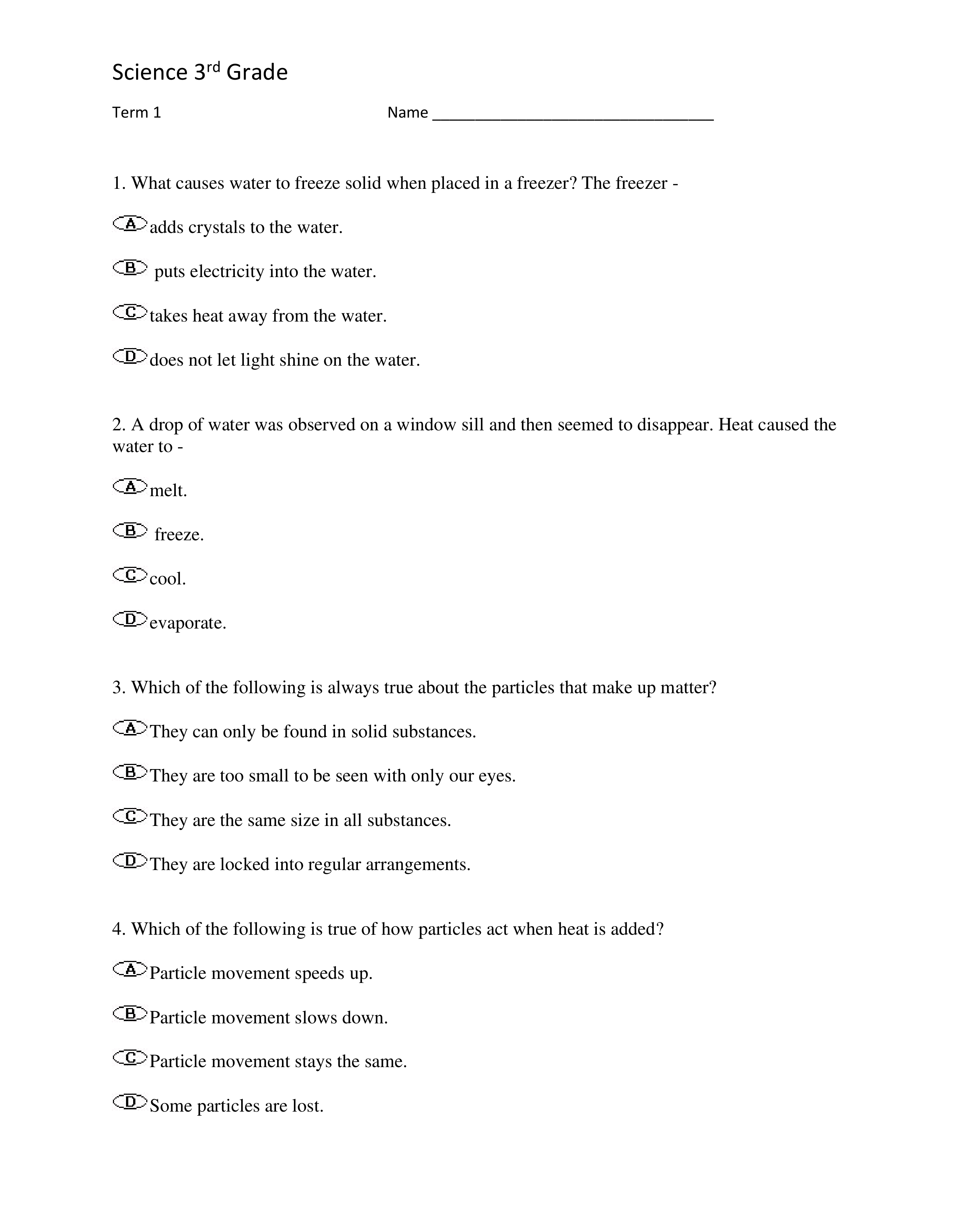 Science Exam First Nine Weeks