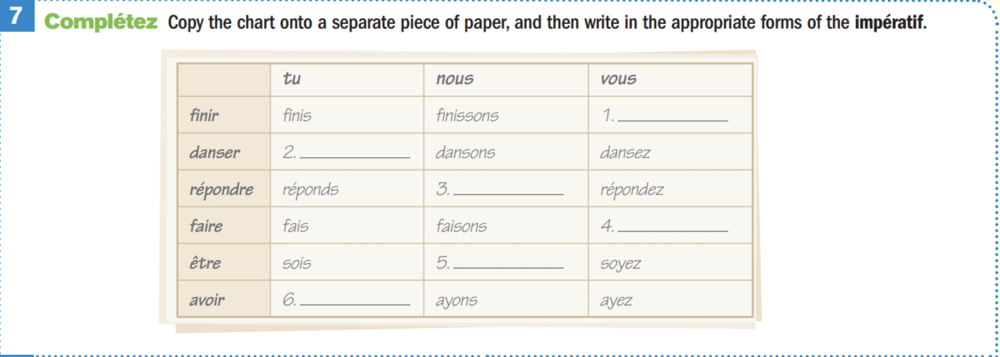 Vous finissez ces devoirs --> Finissez ces devoirs.