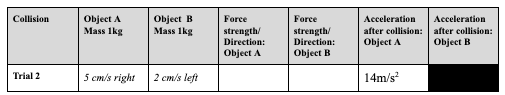 For Each Trial, Drag a second 1kg object into the screen and place it on the same plane as object A, 8 grid unit apart.