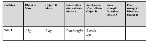 Press ANALYZE to determine the strength and direction of the force exerted on each object. Record in the data table.