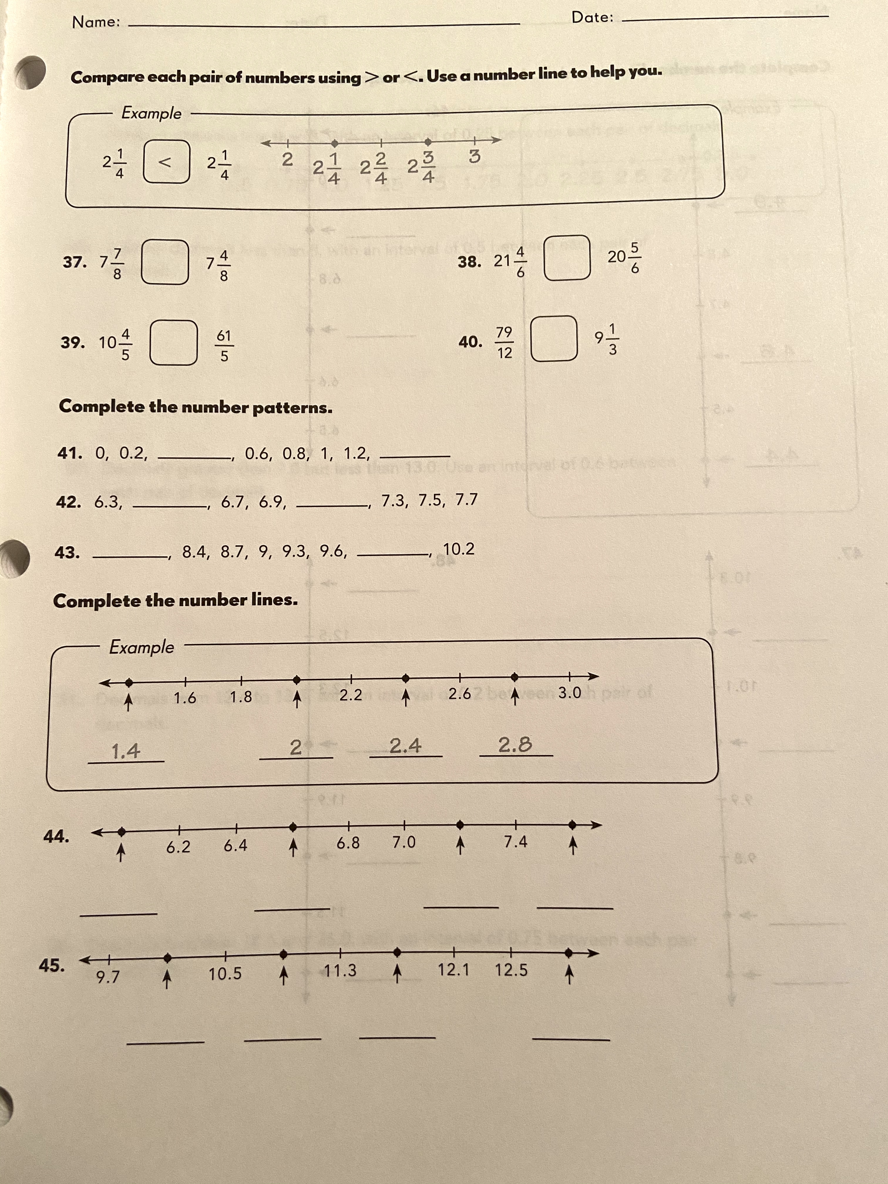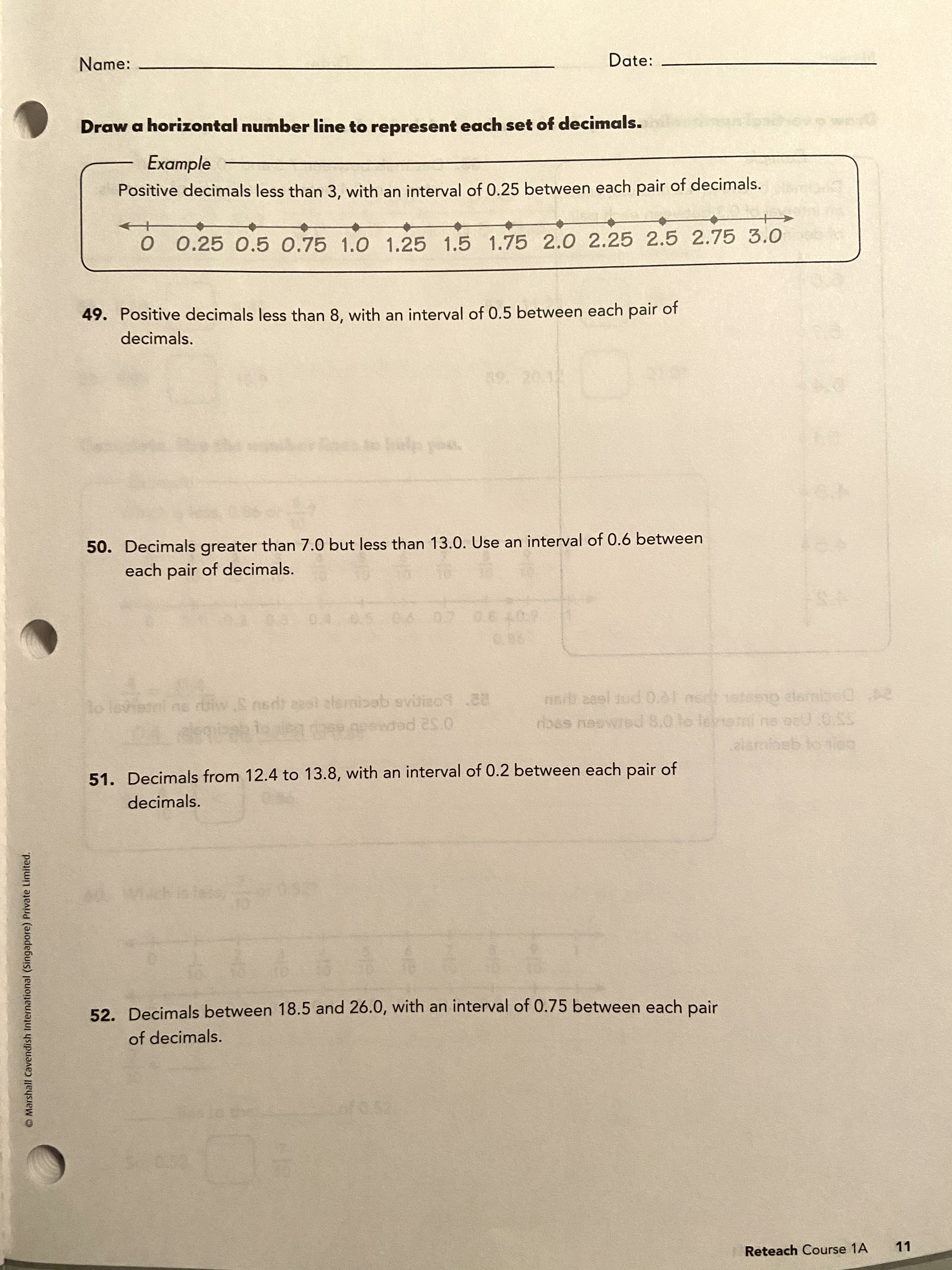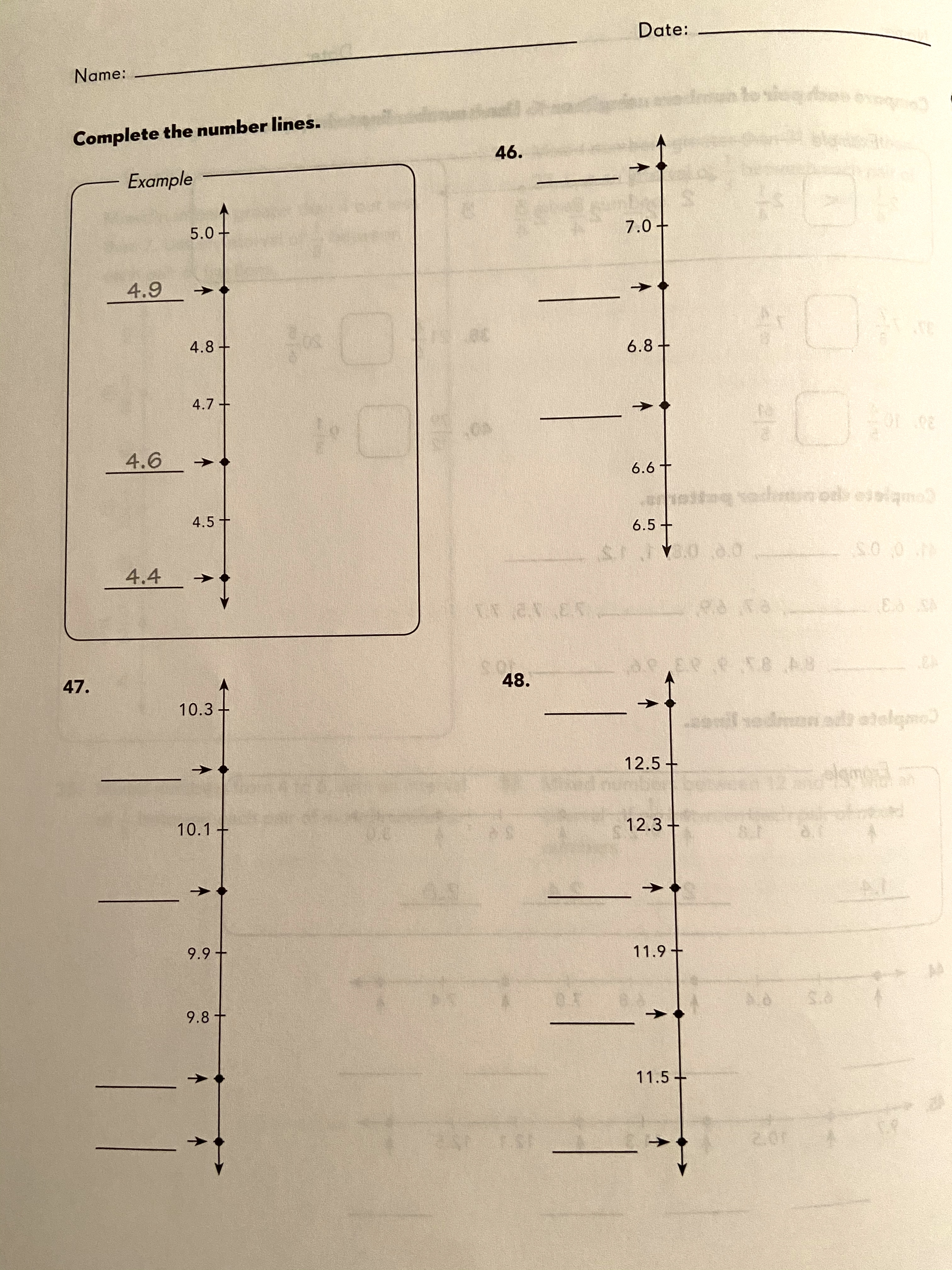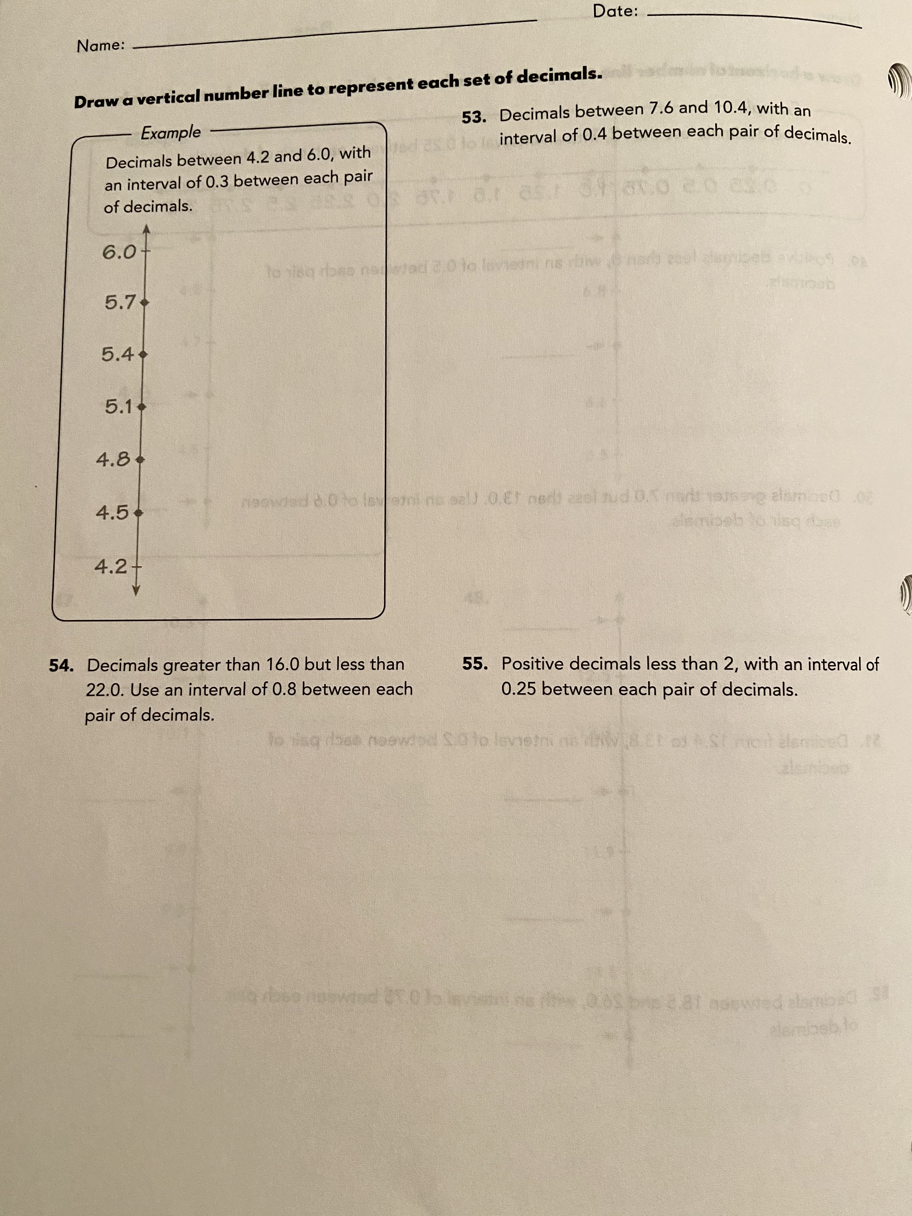 The decimals below are missing from the vertical number line pictured, but they're out of order.