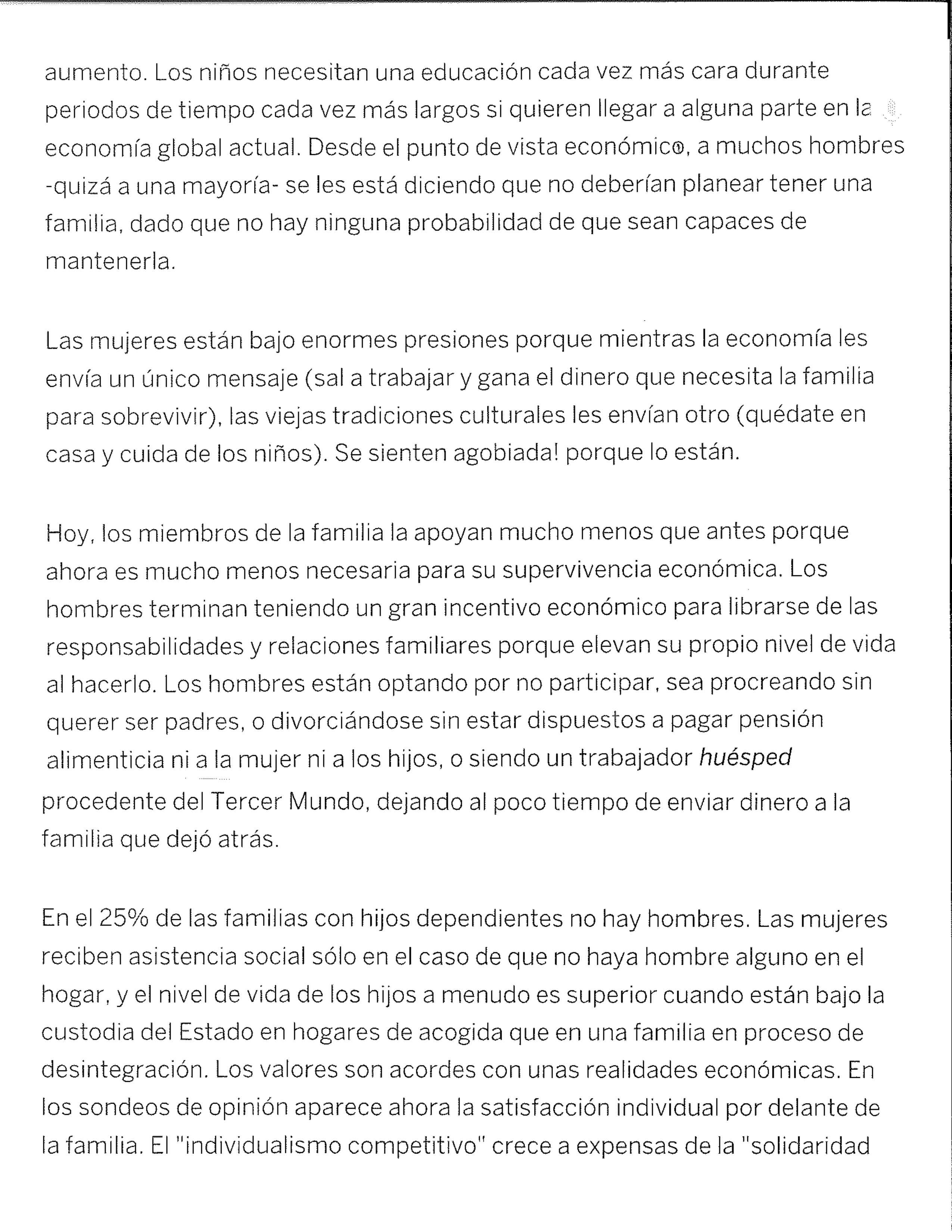 Hoy en día es más difícil para los hombres entre 25 y 34 años mantener a una familia de cuatro personas porque no ganan (reciben suficiente dinero) lo suficiente.