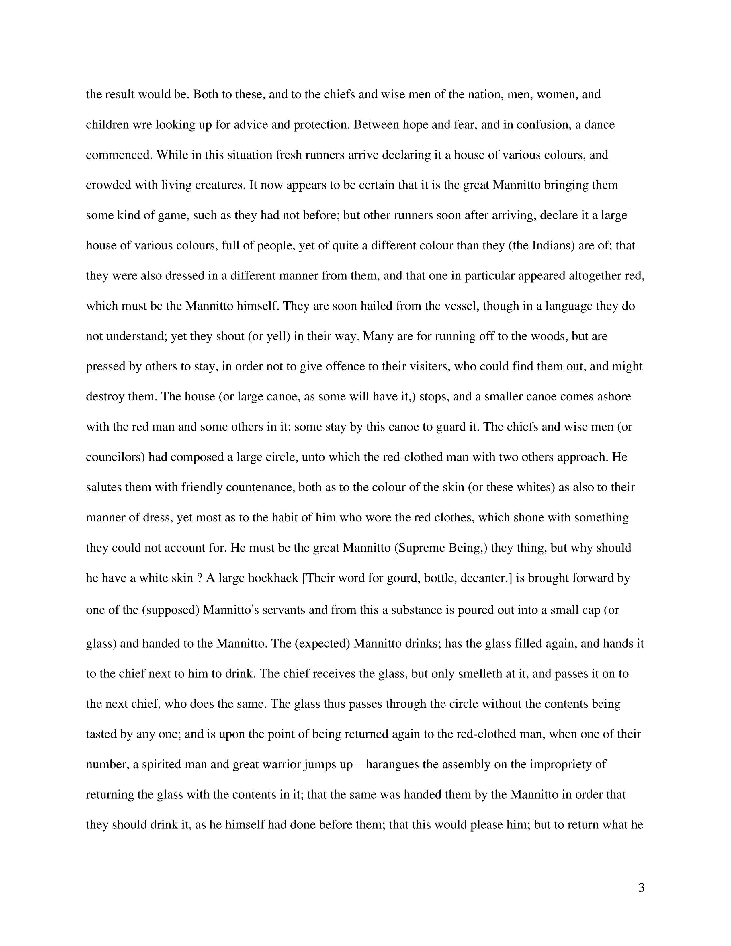 What type of drink is the man in red offering to the Indians?