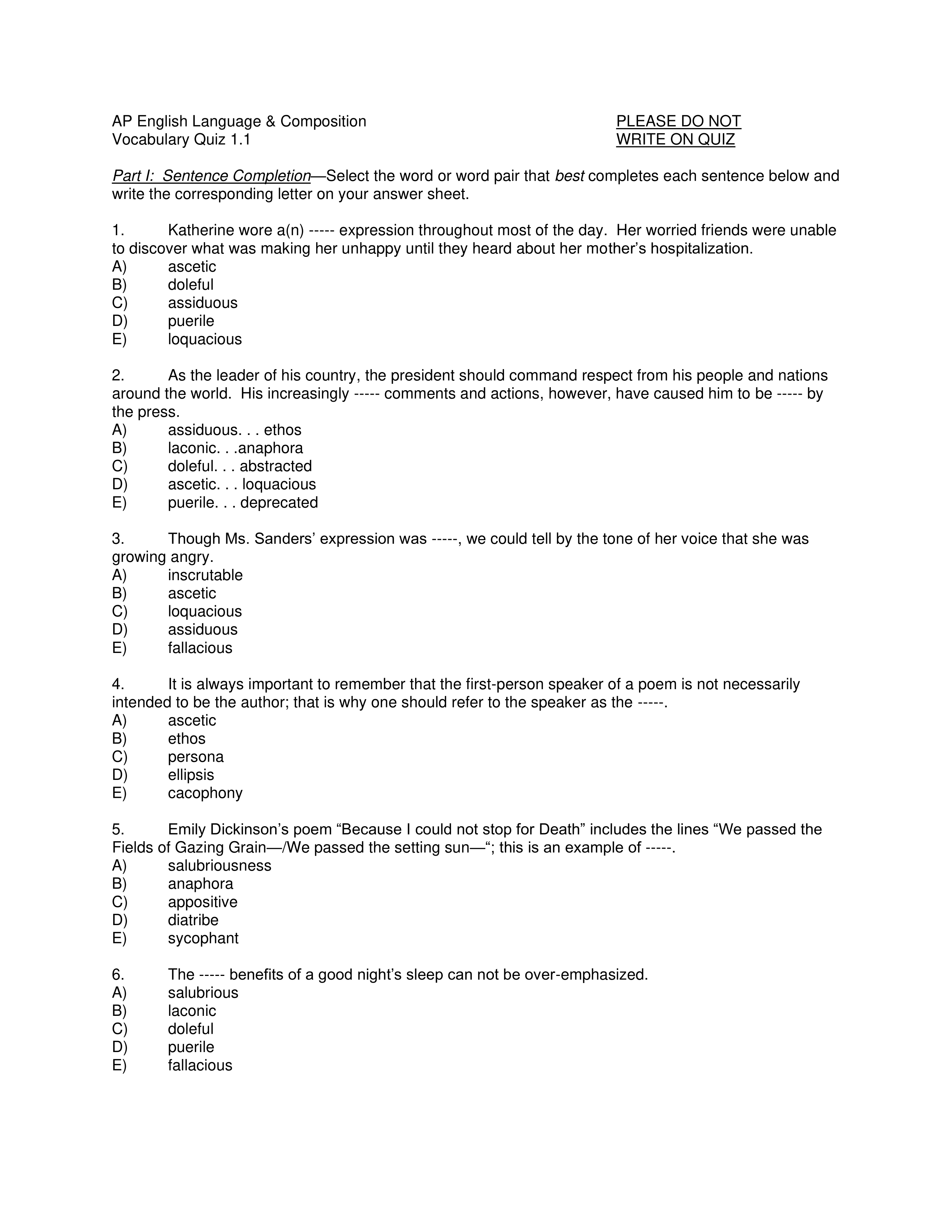 Vocabulary 1.1 Quiz