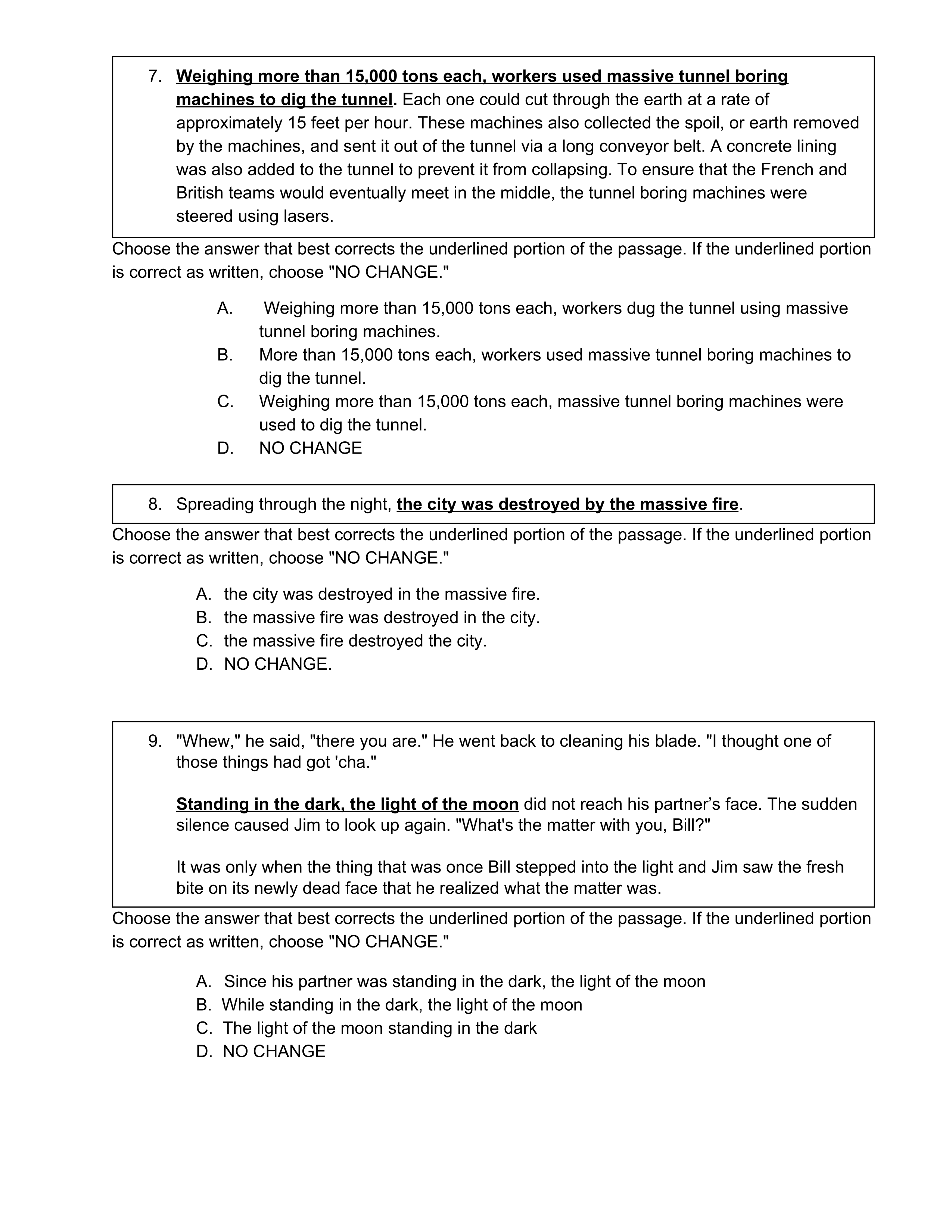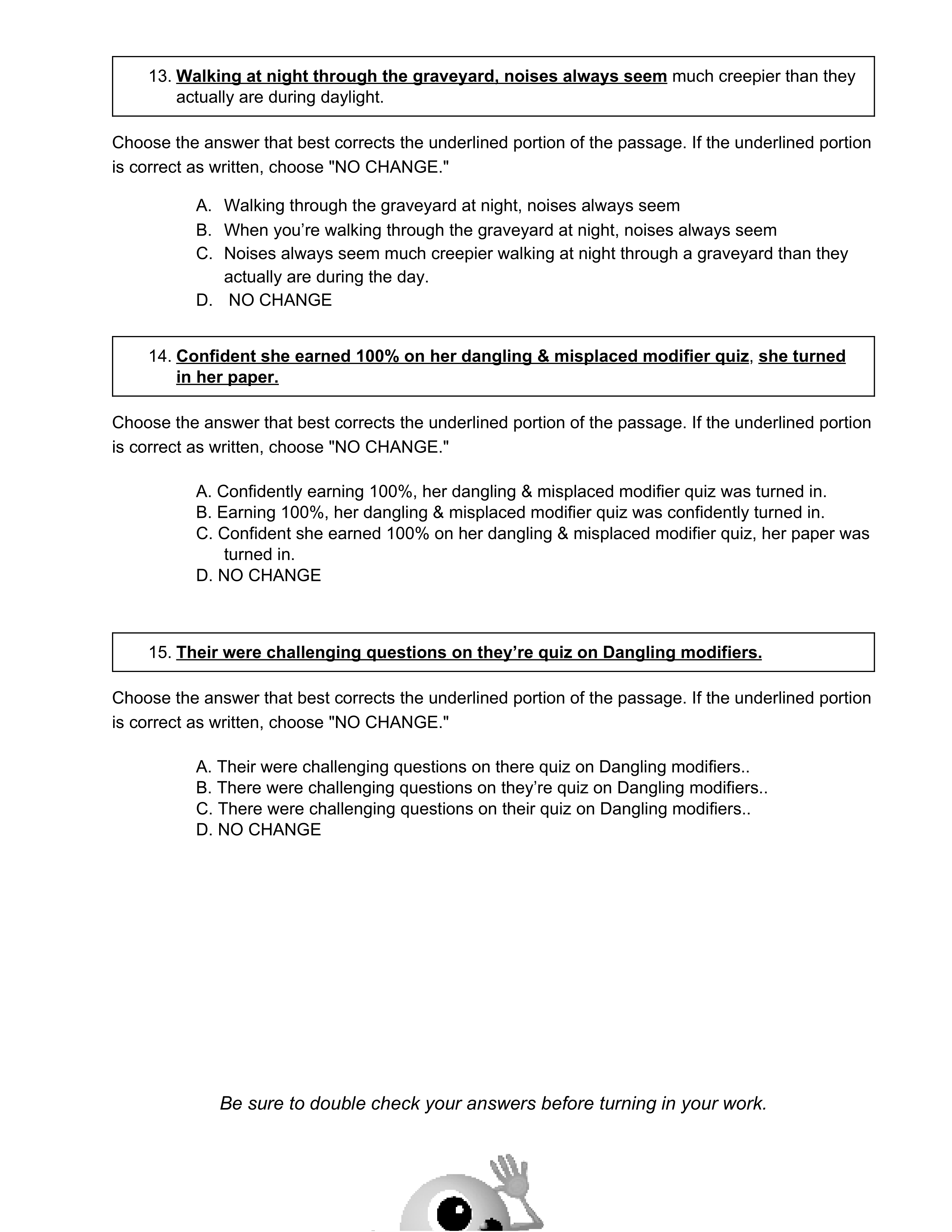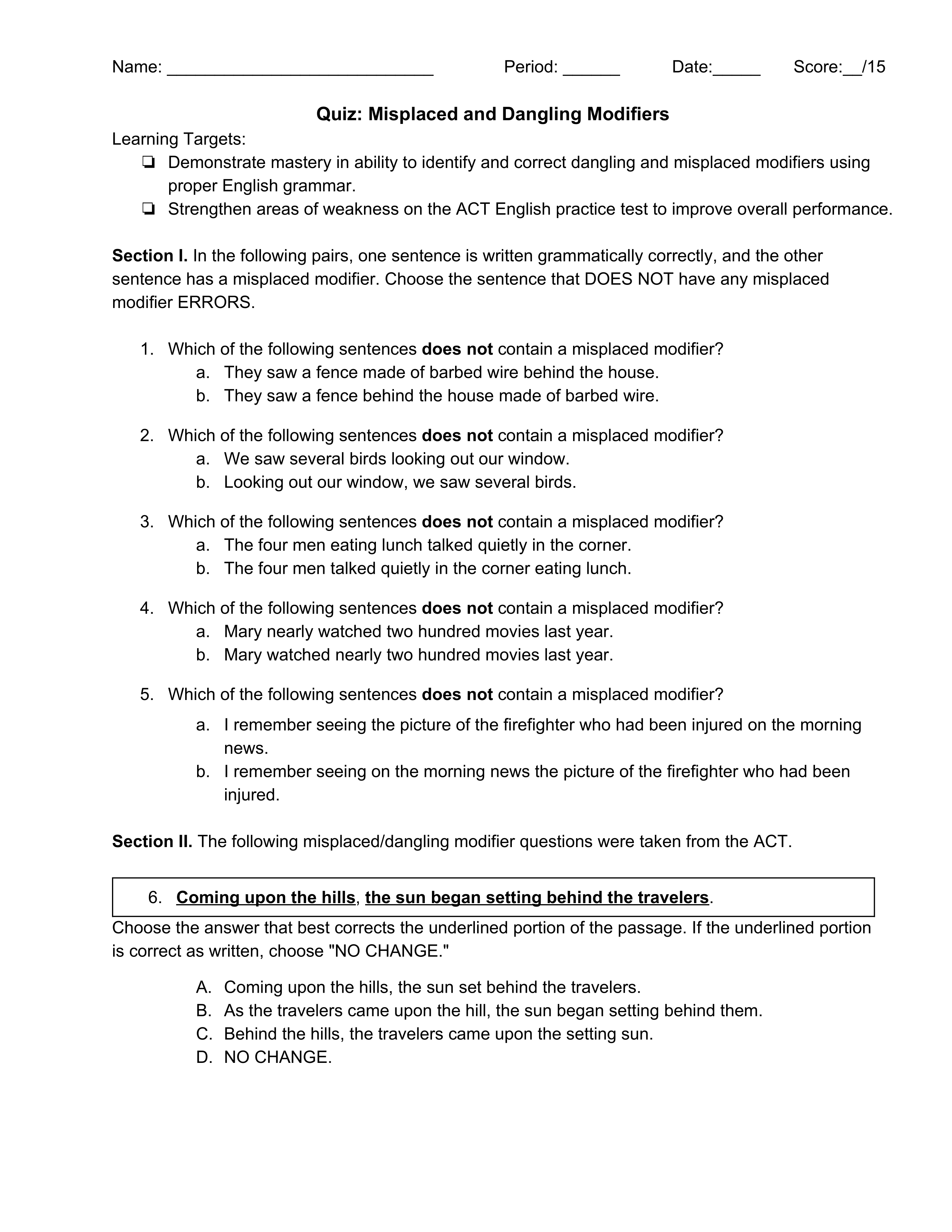 Misplaced and Dangling Modifiers Quiz - ACT English cloned 10/5/2020