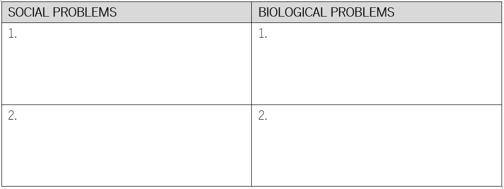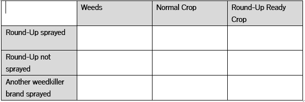 Use the table below to summarise the potential social and biological problems for using Round-Up ready seeds. Give two examples for each (2 marks)
