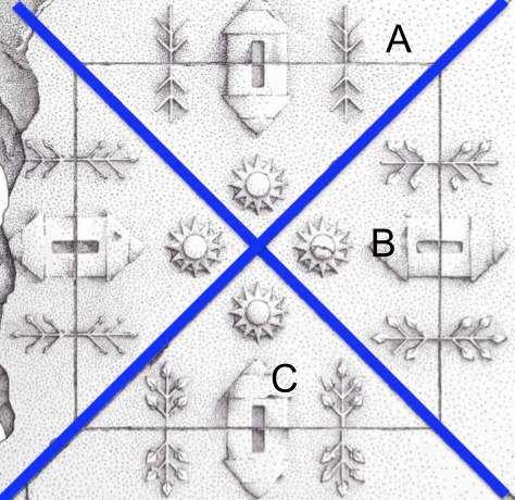 What do you notice about the trees in Section A of the artifact? What season do you think this represents?
