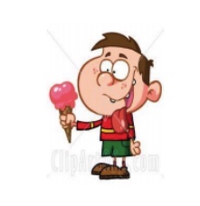 Which picture illustrates the sentence? He eats ice cream.