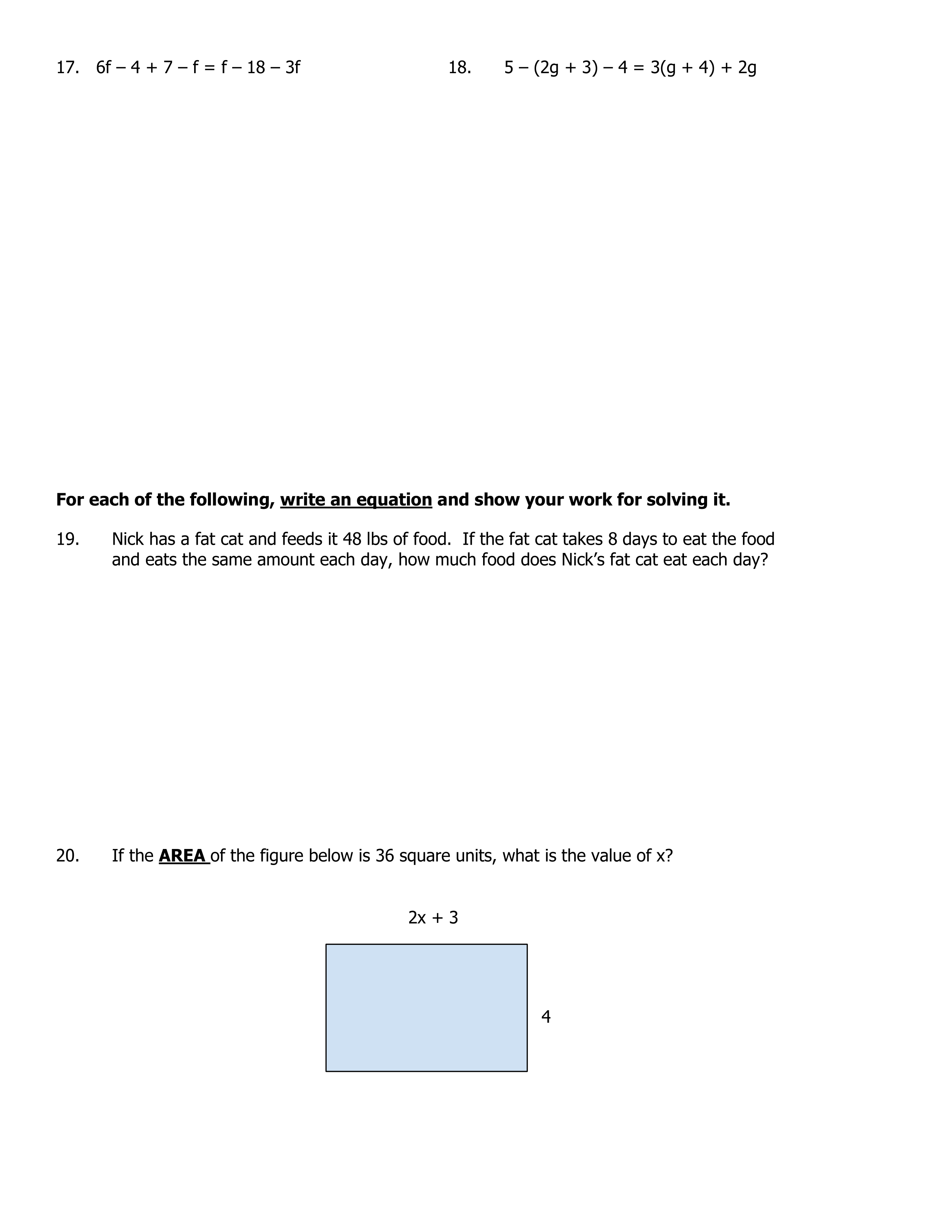 What is the equation for the situation and how much food does Nick's cat eat each day?