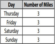 Zain likes to ride his bike. The table shows the number of days and the number of miles he rides in a week. How many miles does Zain ride his bike in a week? Write the multiplication equation that you can use to answer the question. _____ x ______= ______