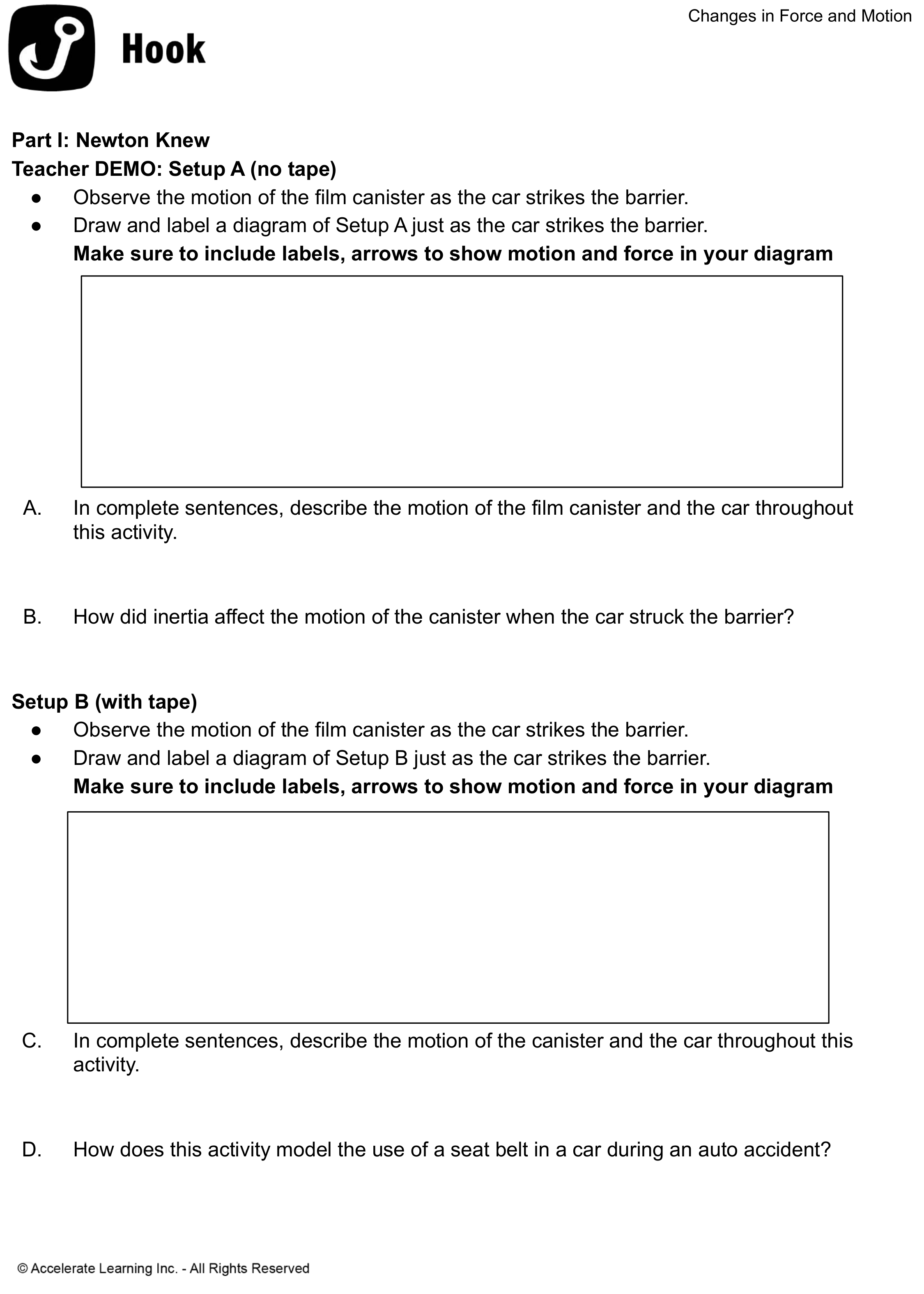 Draw and label a diagram of Setup B just as the car strikes the barrier