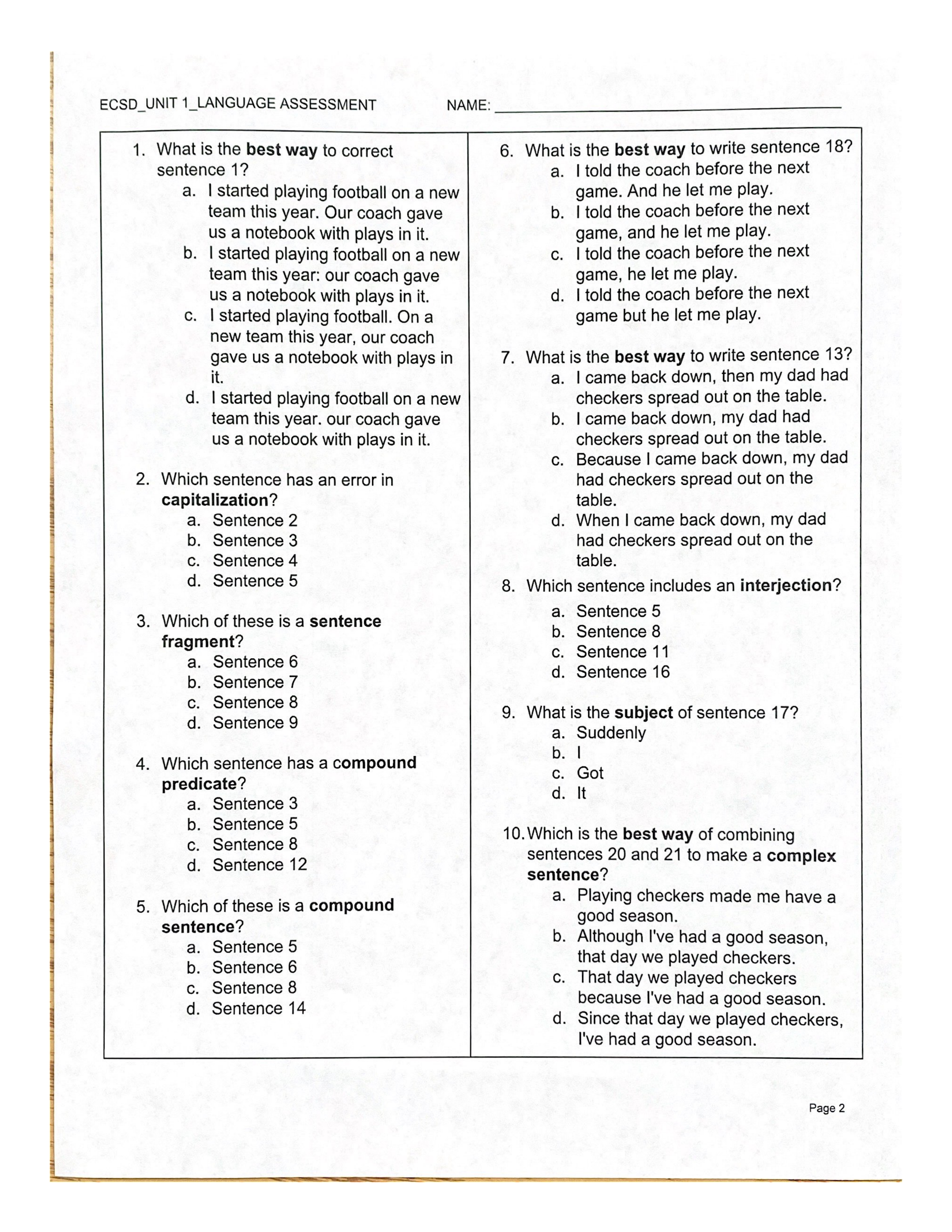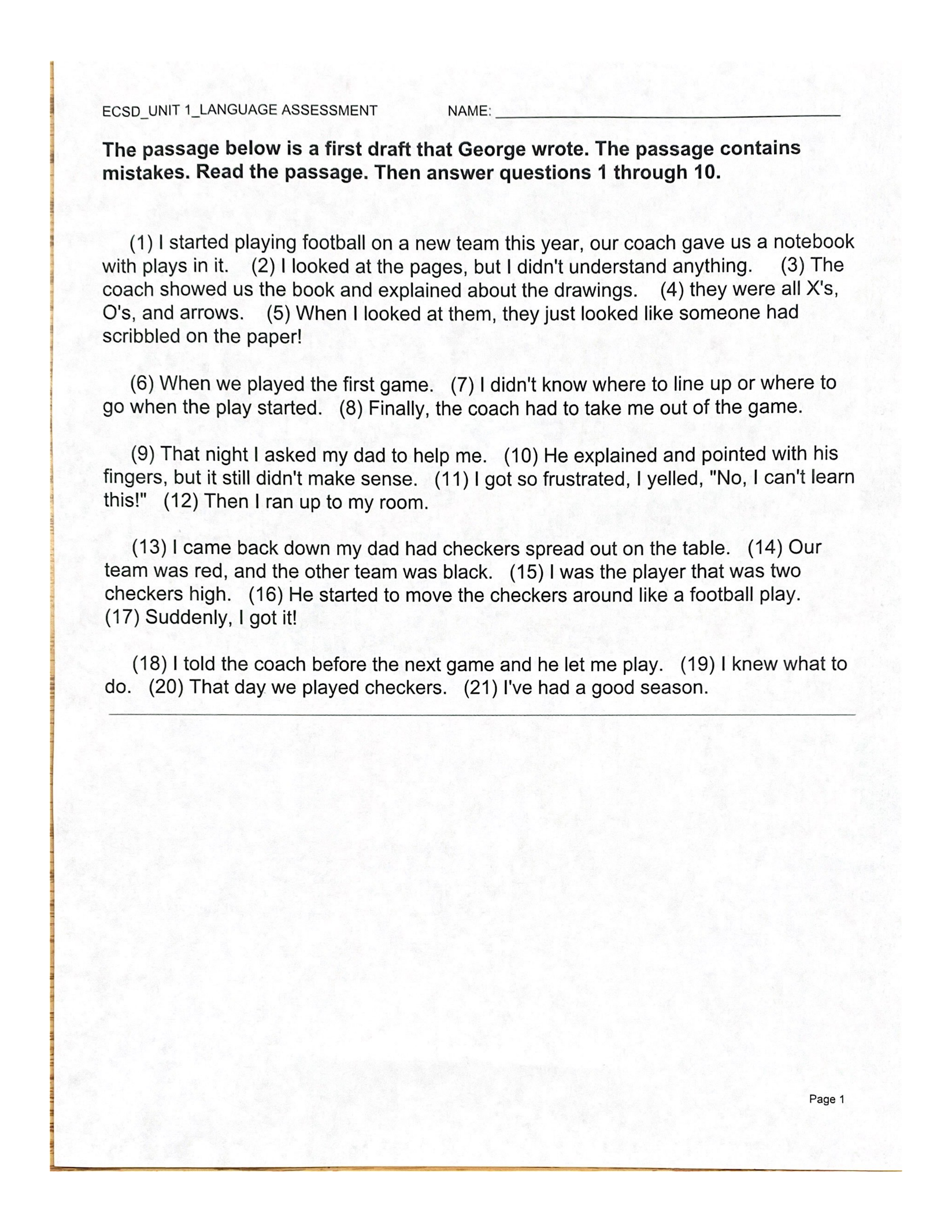 Unit 1 Language Assessment