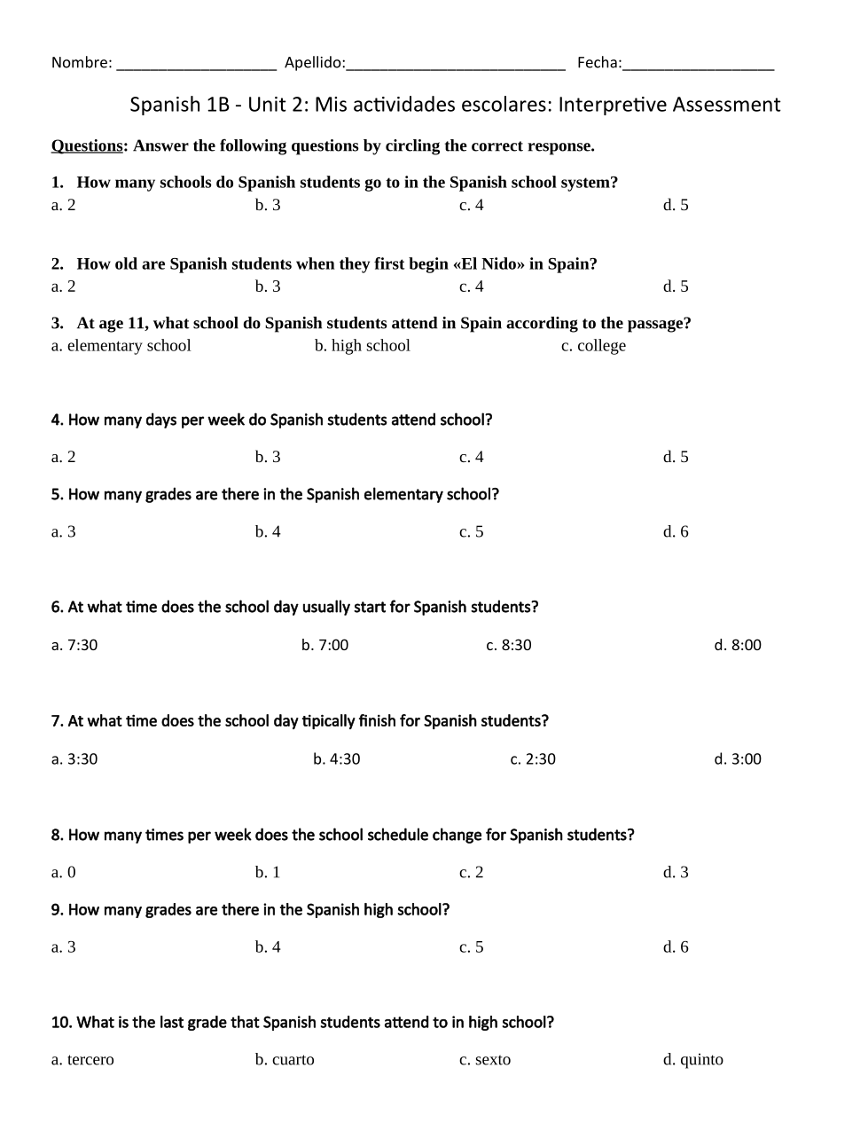 1. At age 11, what school do Spanish students attend in Spain according to the passage?