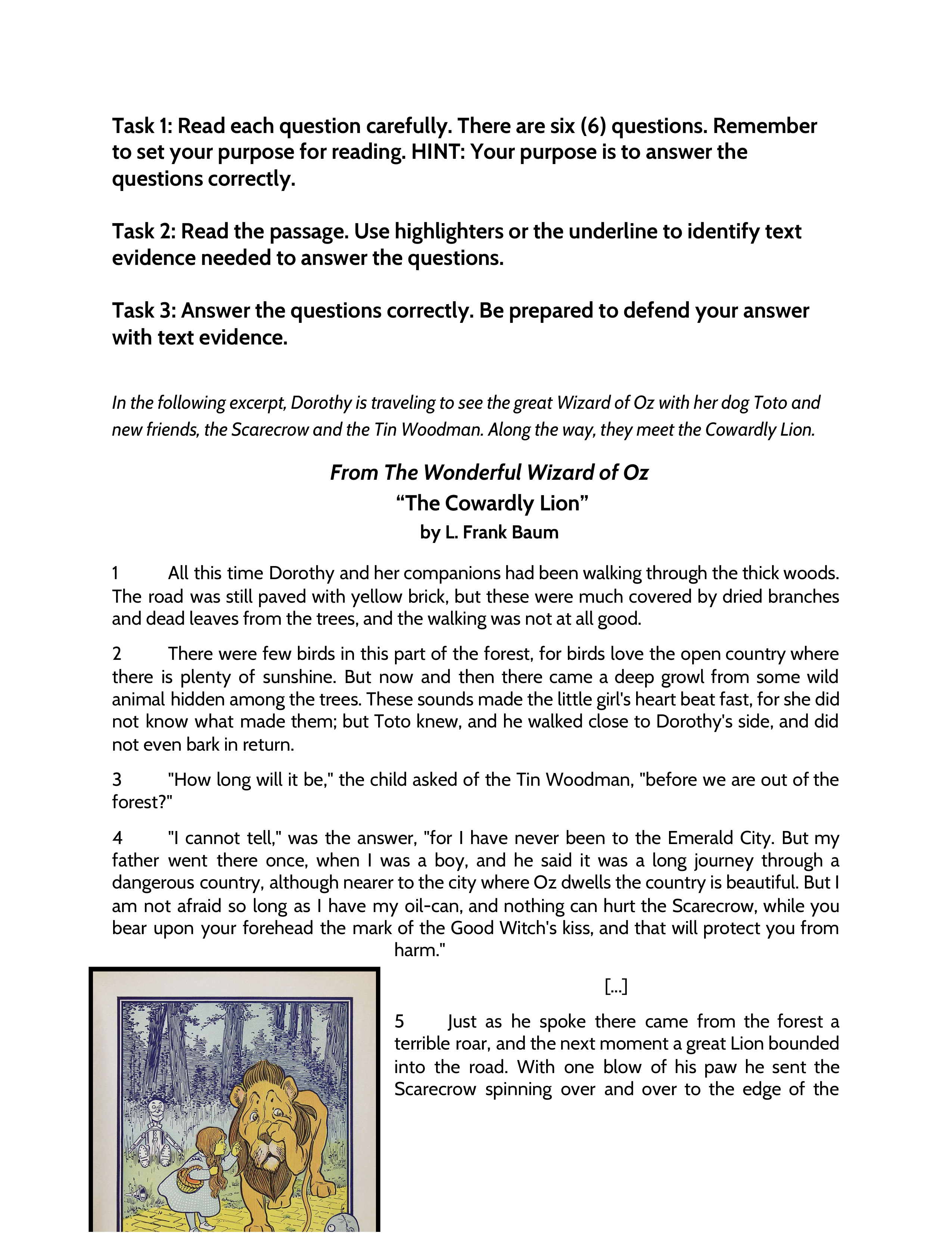 - Fill in the circle before the phrase that shows why Dorothy is upset by the Lion’s behavior. (RL.1.1)