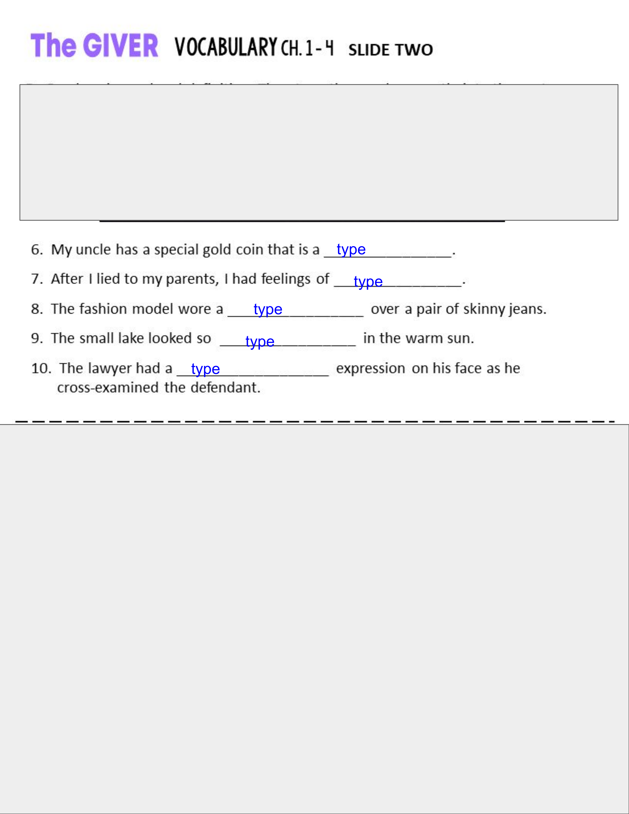 Test 3: Stems 3, Ch. 1-4 Vocab/Content of the Giver, Fig. Lang, Elem. of Fiction,