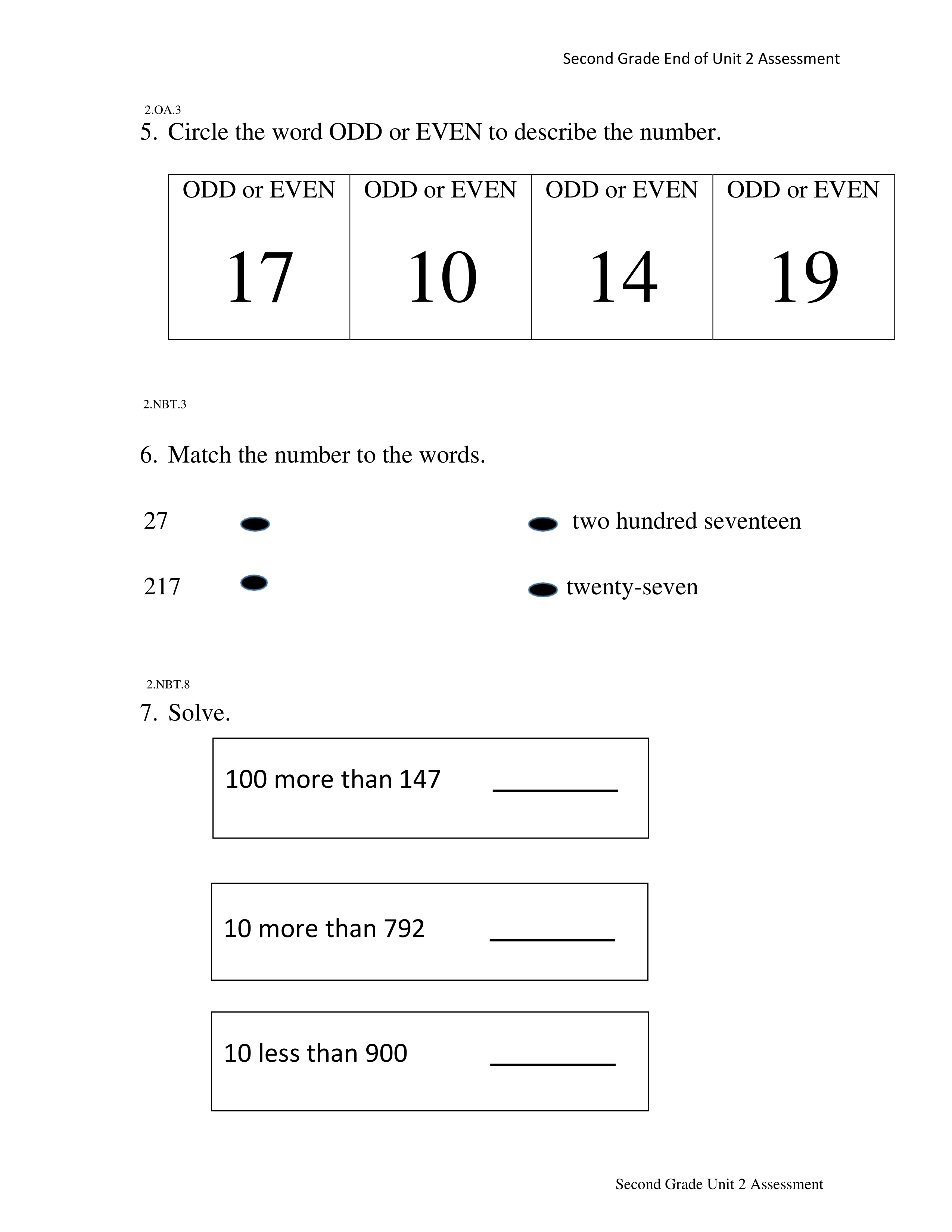 SY 2020-2021 Second Grade Unit 2 Assessment