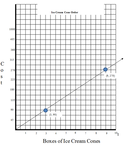 B. The store’s manager is placing an order of boxes of ice cream cones. Below is a graph displaying the number of boxes of ice cream cones purchased and the total cost.