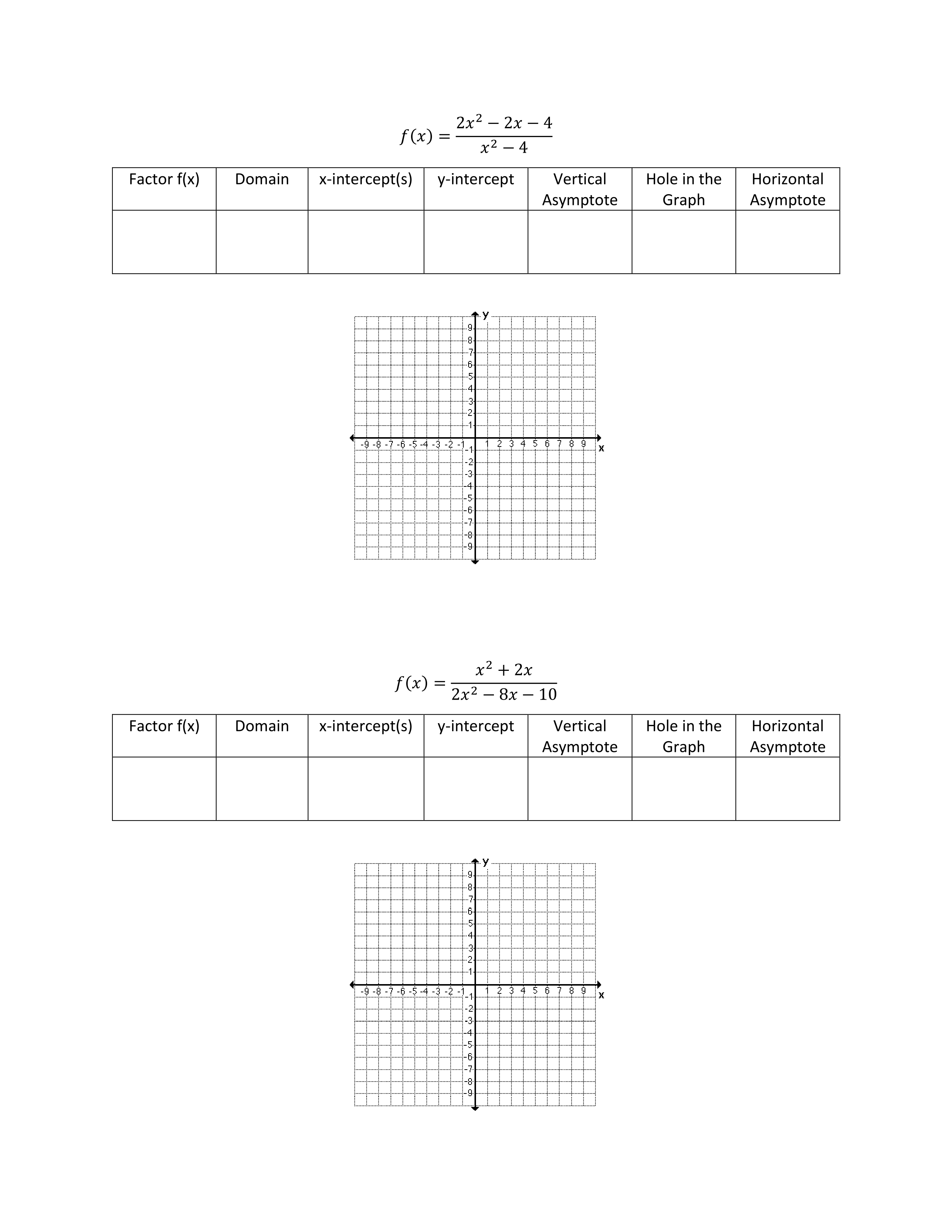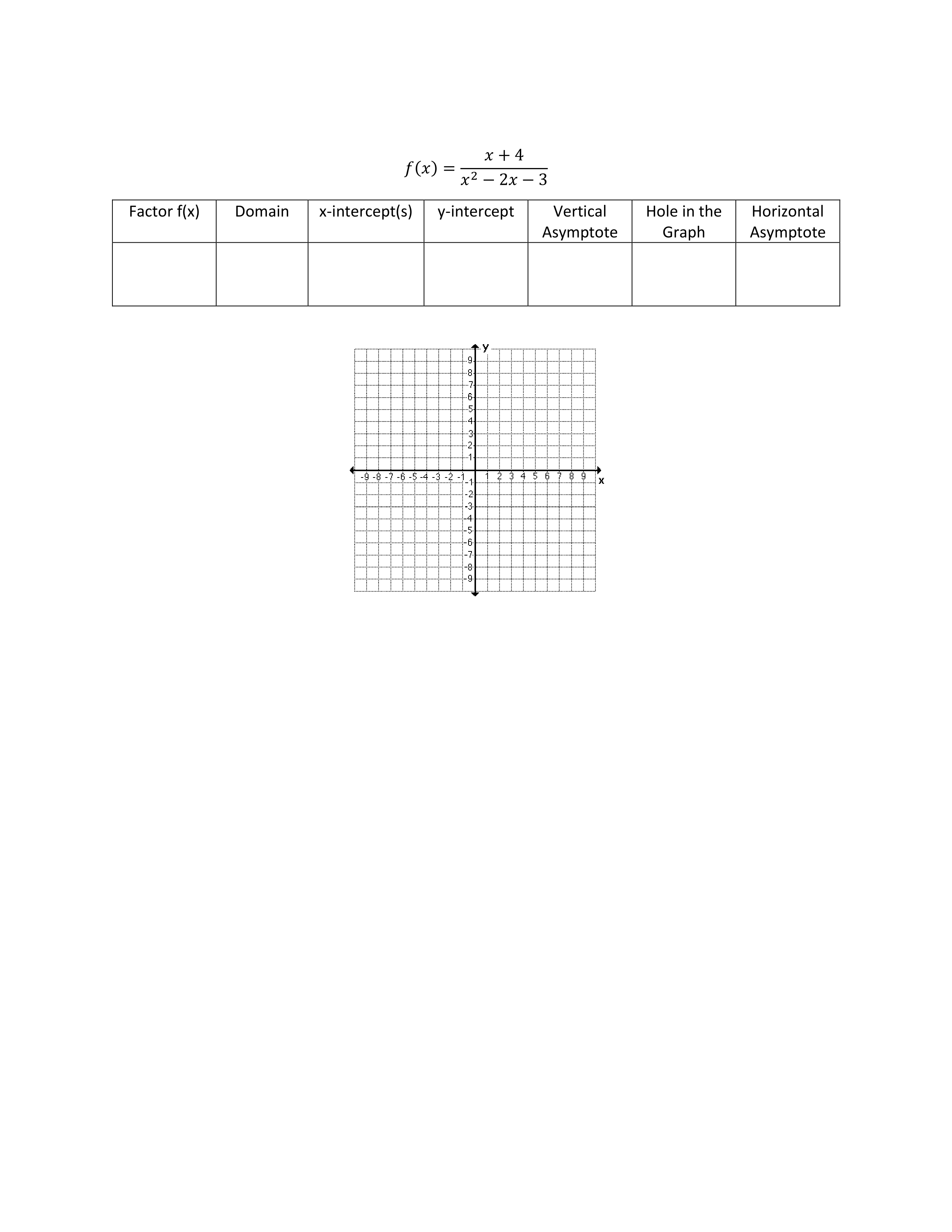 Sketch the graph of the function. Include the intercepts, asymptotes, and holes in your sketch.