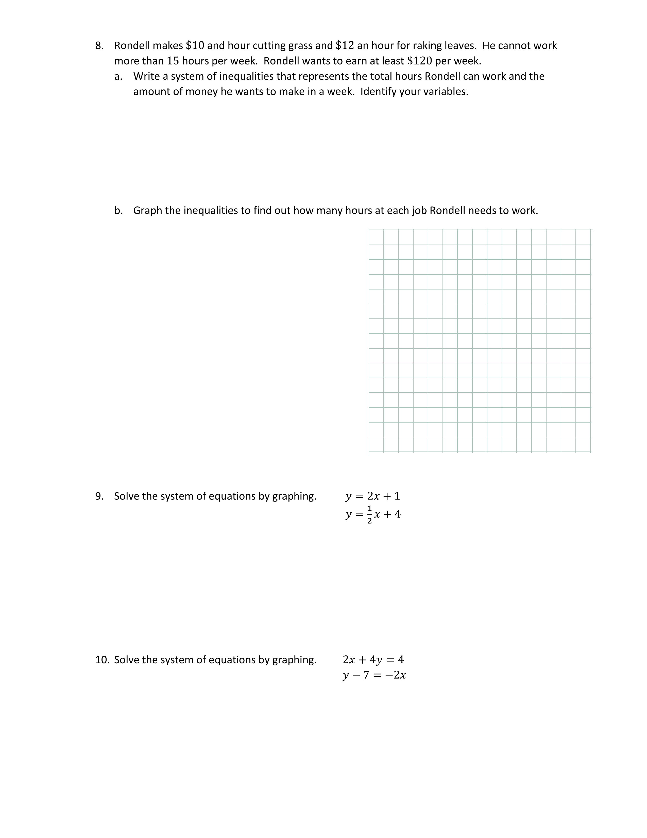 Solving Systems of linear Inequalitites Worksheet Reyes