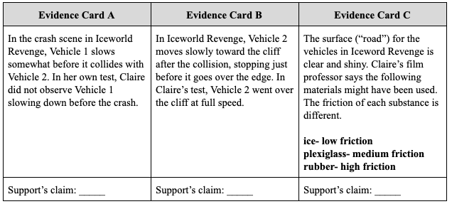 Examine each evidence card. Annotate the cards to help you think about the evidence. Then, use the following questions as a guide for discussing each card.